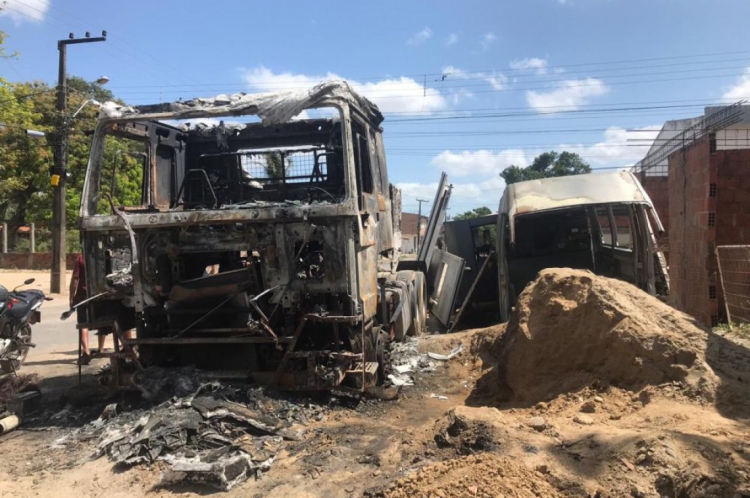 Um caminhão foi incendiado na noite dessa quarta-feira, 25, no bairro Jardim Jatobá, em Fortaleza. O veículo estava estacionado na calçada de uma oficina, onde passava por reparos, há alguns dias. O proprietário do local diz que vai entrar com processo contra o Estado devido ao crime.