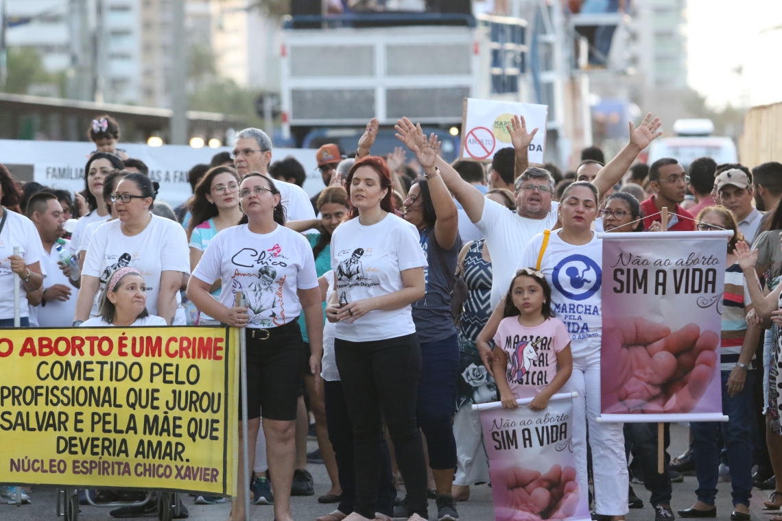 A 11ª edição da Marcha pela vida e contra o aborto levou centenas de pessoas à avenida Beira Mar, em Fortaleza, neste sábado, 5. A estimativa da organização é de 2 mil participantes. Representantes de diversas religiões estiveram no local para endossar o discurso contra as práticas abortivas e em defesa da vida desde a concepção. O público era composto principalmente por jovens, que empunhavam bandeiras de suas organizações e dançavam de acordo com as músicas que tocavam nos dois trios elétricos que acompanharam a manifestação.