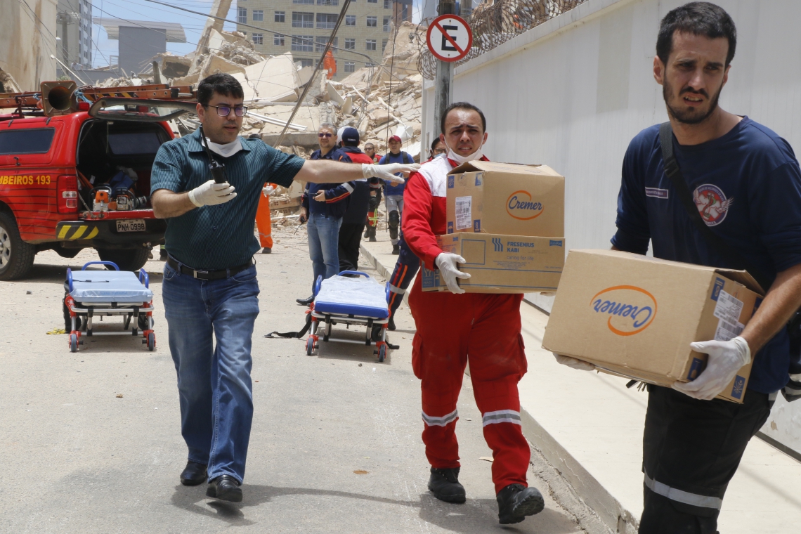 AssineAo fundo, o cenário era desolador. Grandes paredes de concreto formavam um amontoado em meio à poeira que se espalhava pelas ruas da região. Vizinhos e familiares dos moradores do edifício choravam e eram consolados por outras pessoas que chegavam no local em busca de informações. A cada resgate, os socorristas eram aplaudidos por quem acompanhava o trabalho.