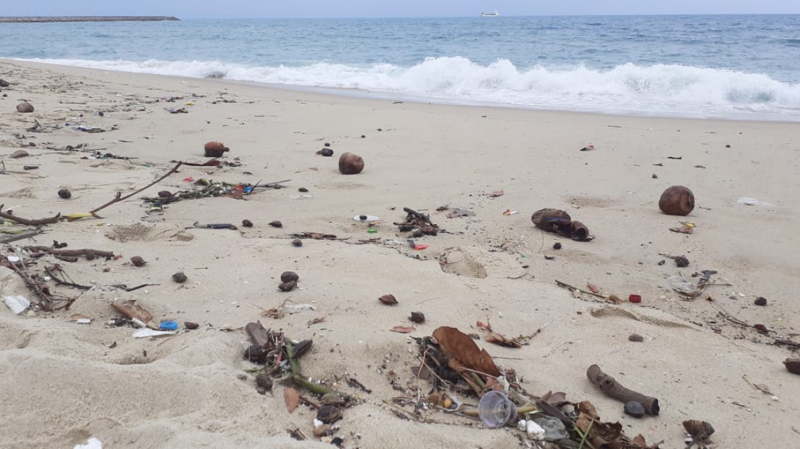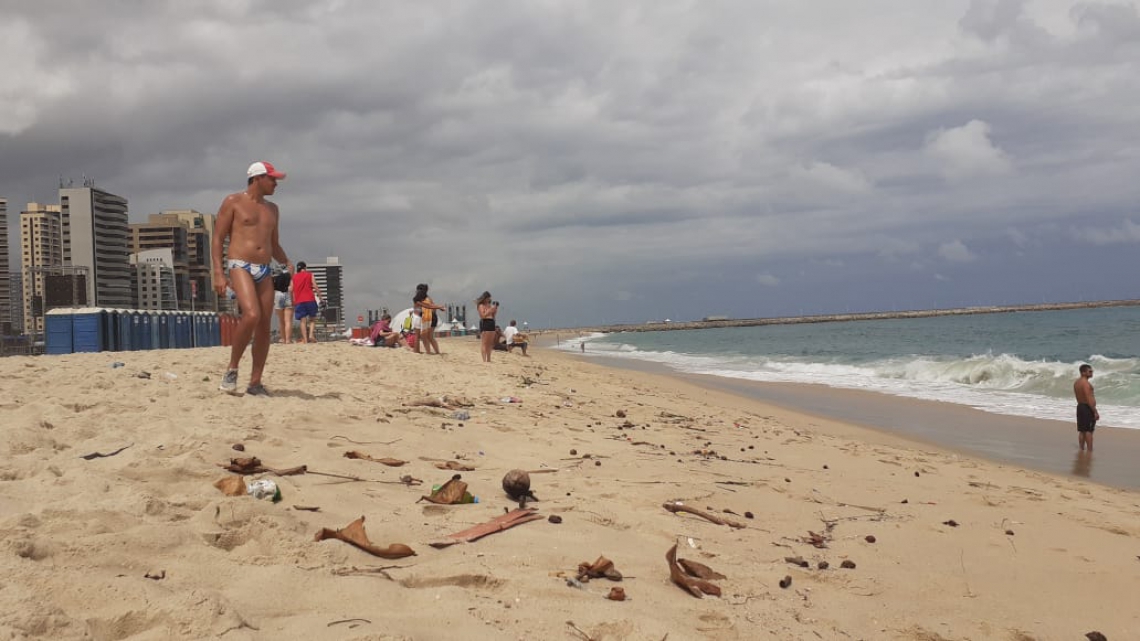 Aterro da Praia de Iracema amanhece com lixo nesta terça; equipes da Prefeitura trabalham na limpeza
