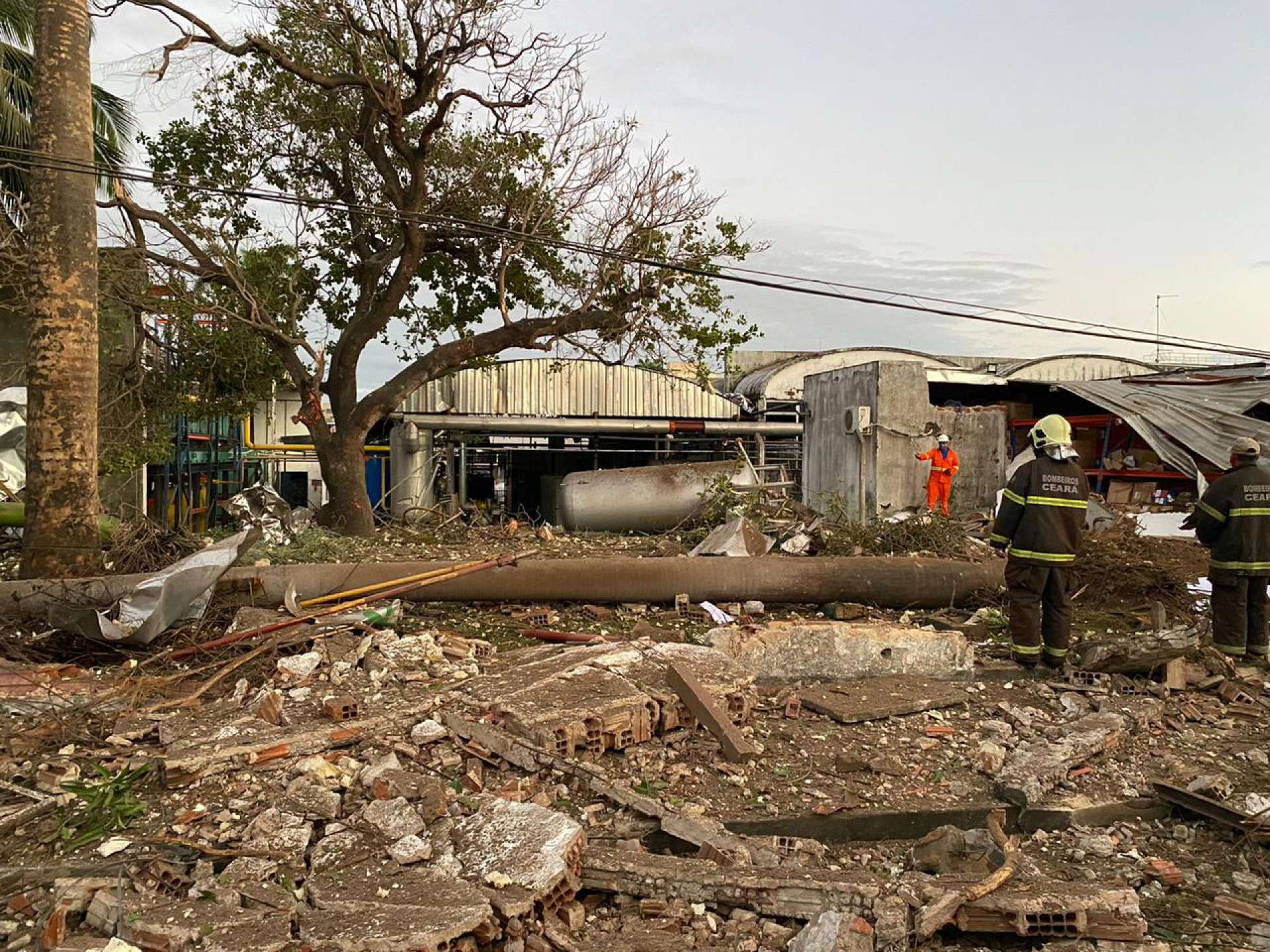 O perímetro da área atingida foi isolado por equipes do Corpo de Bombeiros. Três viaturas foram enviadas para a localidade. “Tivemos o carro comando, uma viatura de combate ao incêndio e uma de salvamento, a equipe de engenharia do CBMCE também foi acionada”, elenca o supervisor. A operação conta ainda com apoio da Defesa Civil, que avalia os danos causados nos imóveis que ficam no entorno da empresa de refrigerantes.