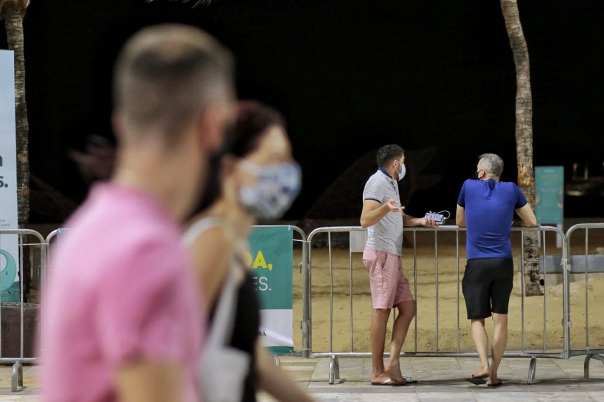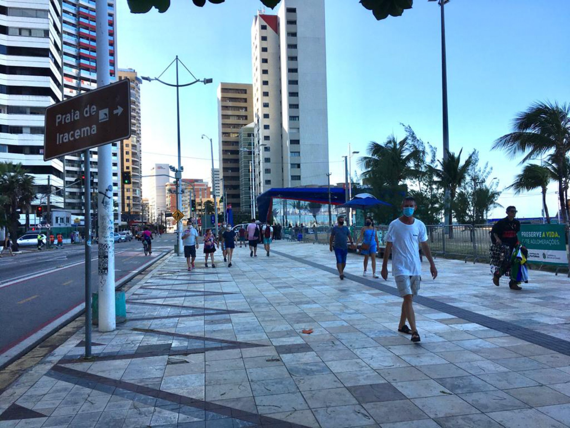 Com o isolamento do acesso ao aterro da Praia de Iracema, em Fortaleza, o calçadão da Avenida Beira Mar registrou baixa movimentação de pessoas e grande fluxo de agentes fiscalizadores desde o fim da tarde e na noite desta quinta.
