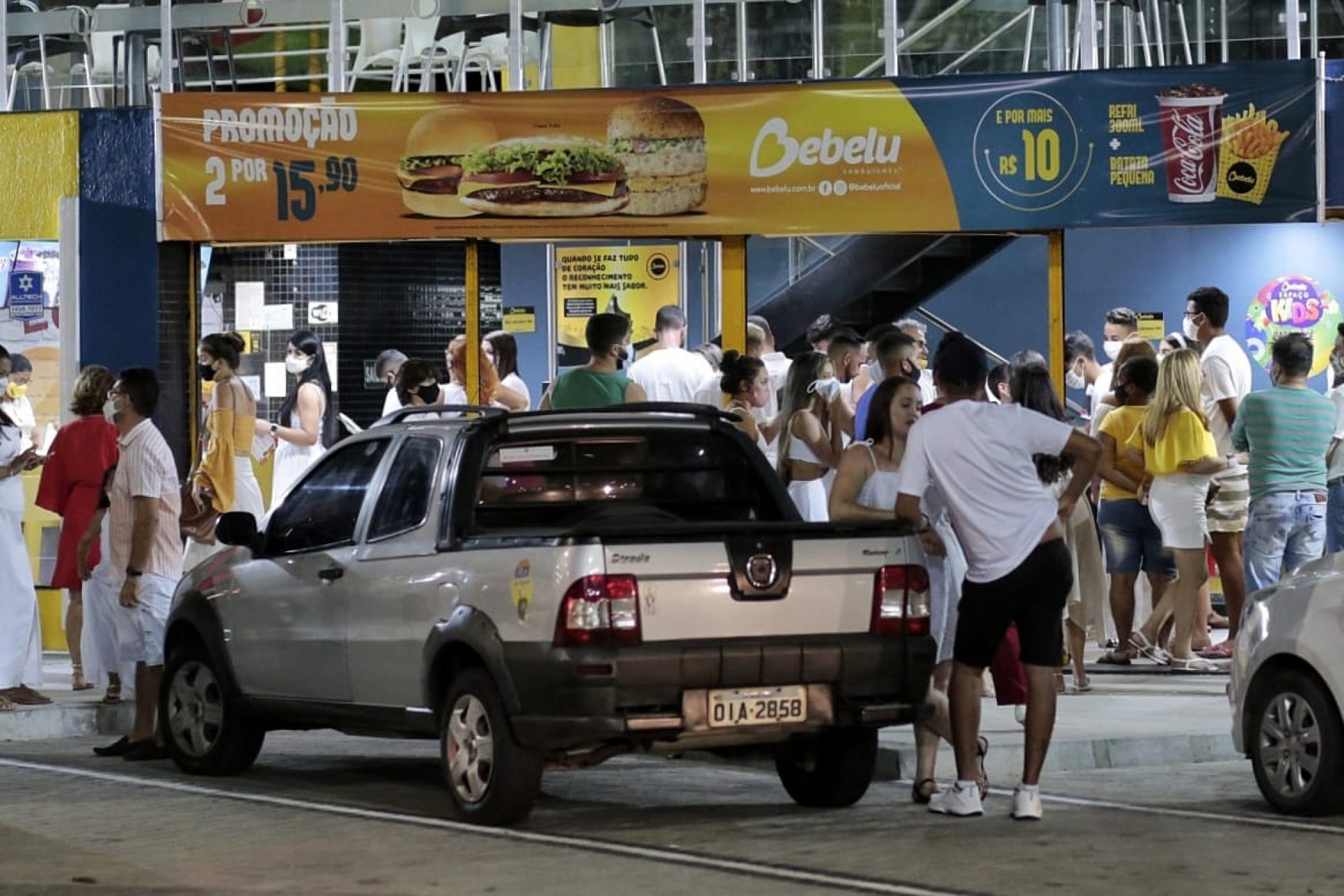 Perto da hora da virada, poucas pessoas circulavam nas imediações do Náutico. Elas usavam máscaras. Uma movimentação que havia no calçadão foi dispersada por uma chuva que começou no local.