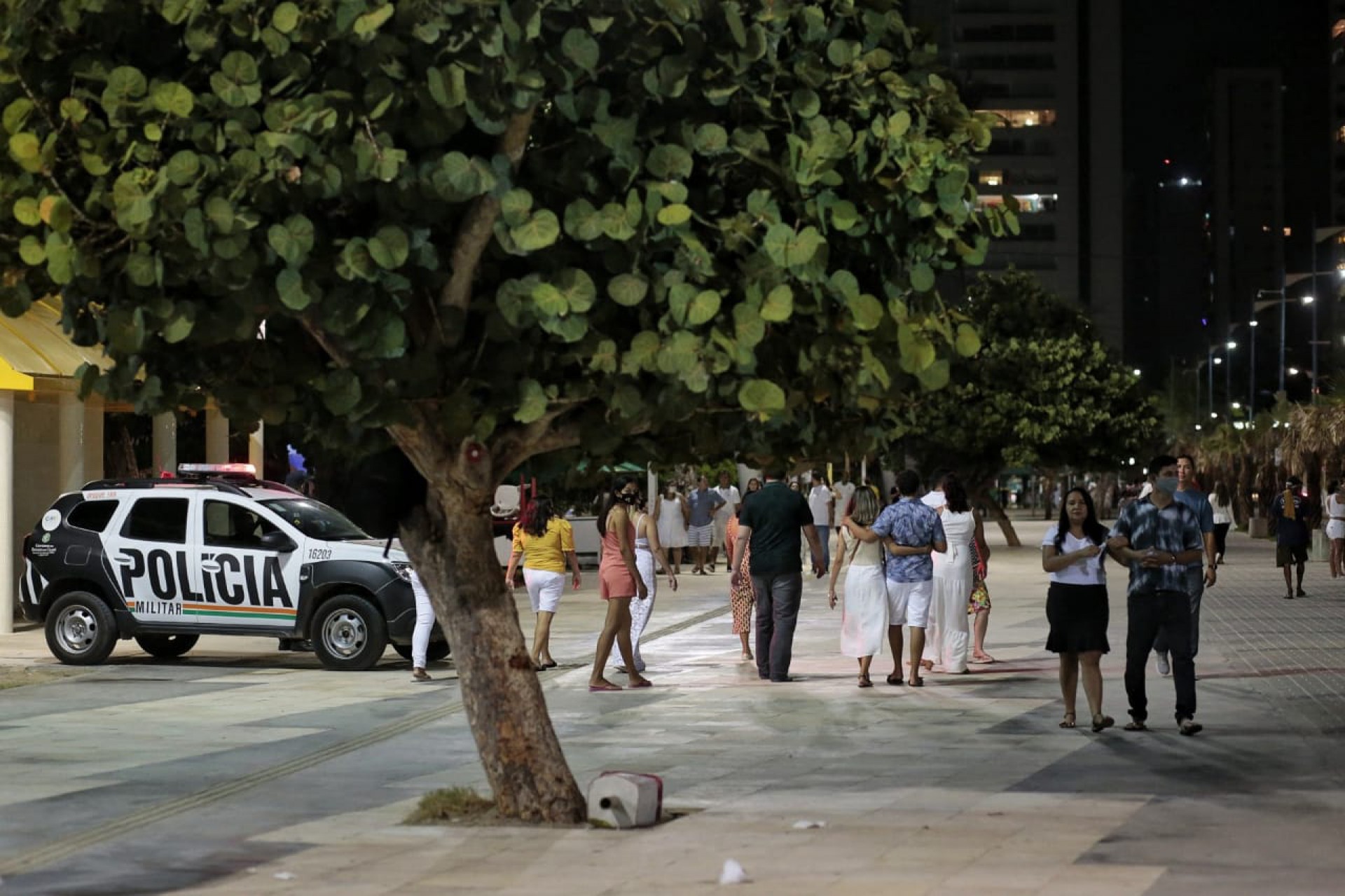 Se no fim da noite já eram vistas pessoas sem máscara, mais cedo a população que transitou pelo calçadão durante a véspera de Réveillon utilizava máscaras e não formava pontos de aglomeração, seguindo o que recomenda o decreto especial de fim de ano no Ceará. As medidas visam desacelerar a disseminação da Covid-19 no Estado.