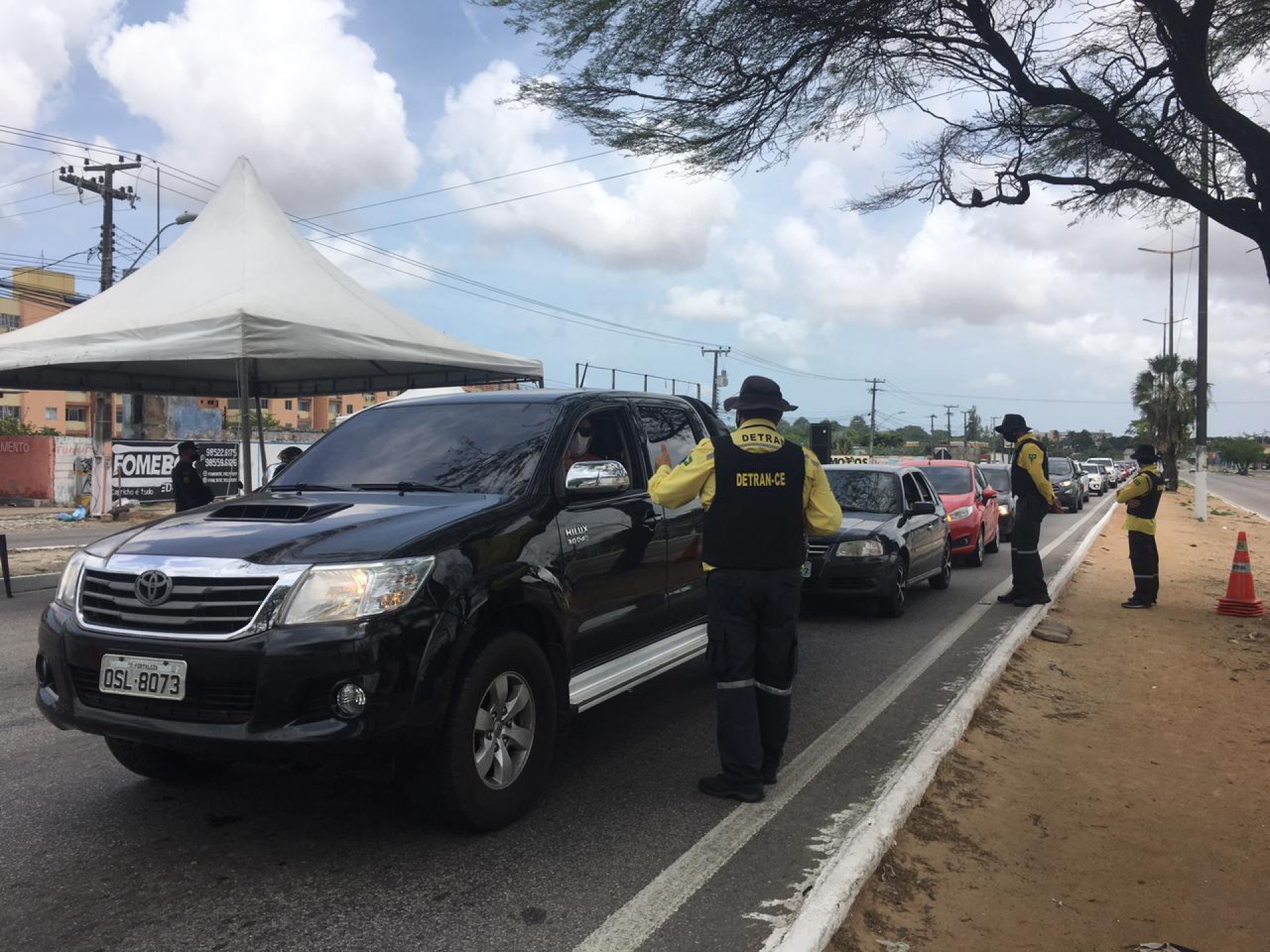 Mais de 30 policiais e agentes do Detran estão no local para garantir a fiscalização. O maior fluxo é no sentido Caucaia/Fortaleza