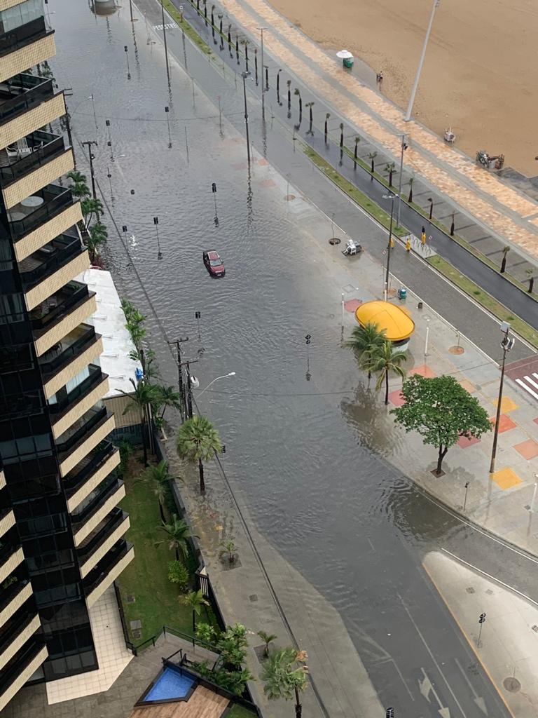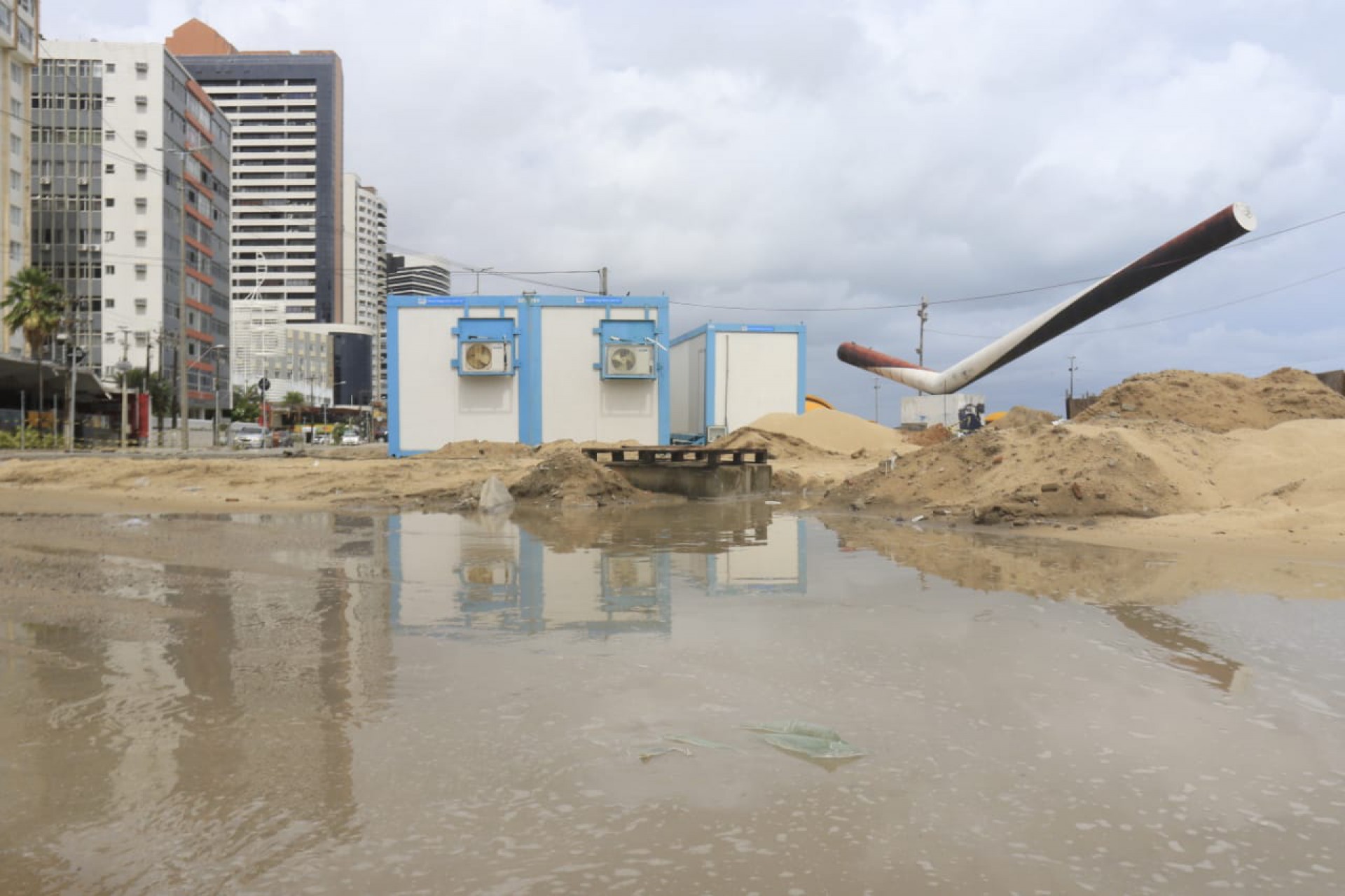 Praia de Iracema. O alagamento diminuiu, mas se concentra agora na areia, em frente ao Ideal Clube. pic.twitter.com/7khej3AExy