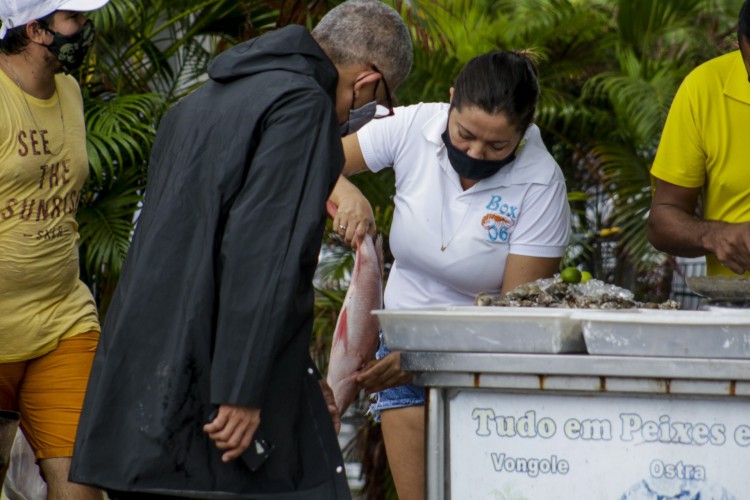 "Tenho 40 anos vendendo aqui e nunca vi isso. Hoje, eu só vendi 1 kg de camarão. Nesse mesmo dia, no ano passado, já tinha vendido mais de 100 kg de camarão. Não coloco a culpa na chuva não, é o povo que não tem dinheiro mesmo. Mas fazer o quê? A pandemia está aí, não acho que vai melhorar muito não, o povo está sem dinheiro. E o peixe ainda está caro", afirma.
