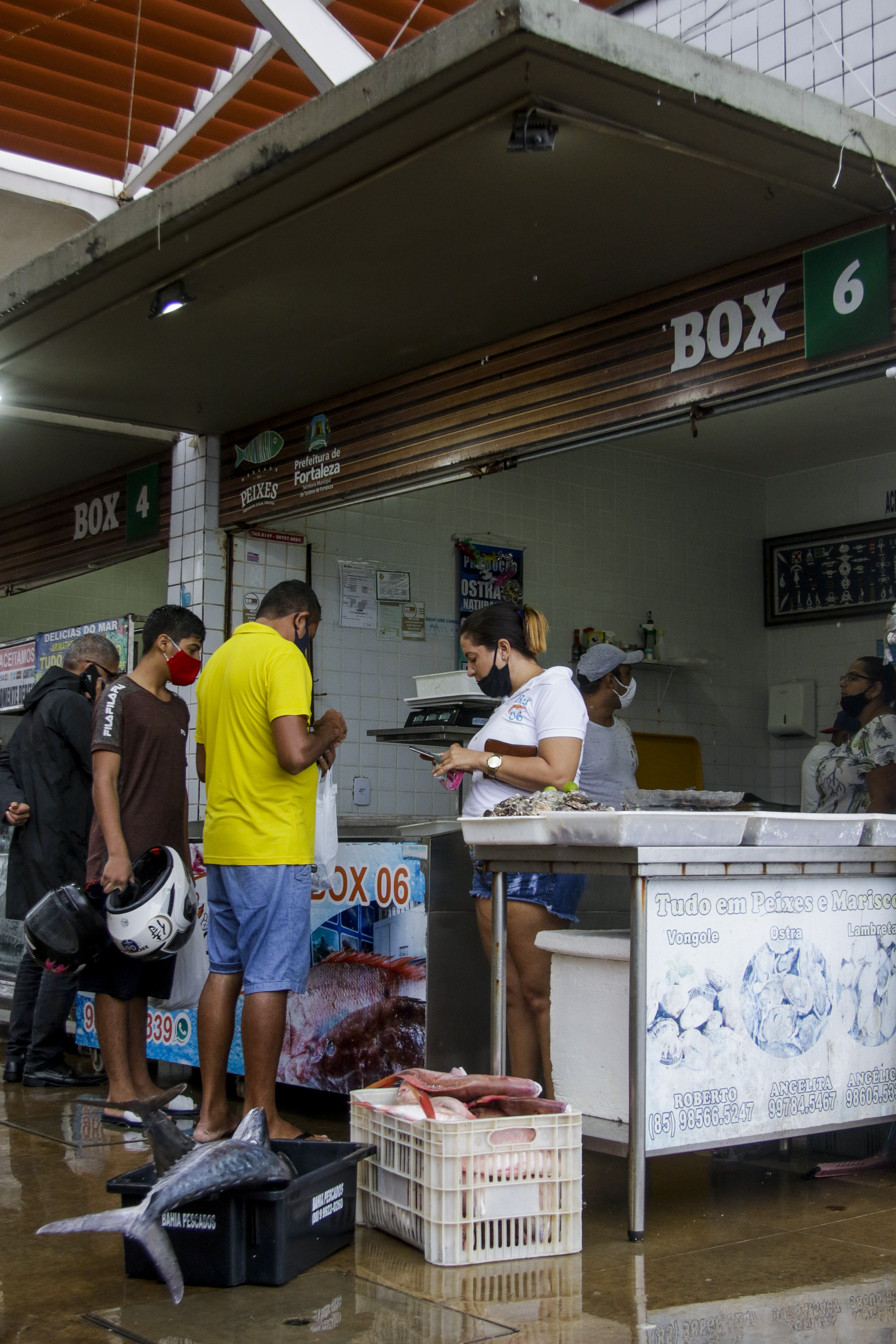 A tradicional venda de pescados, que antecede a sexta-feira santa, costuma movimentar o Mercado dos Peixes, localizado na Avenida Beira-Mar, na orla de Fortaleza. Entretanto, a movimentação tranquila no local serve de retrato do atual momento.