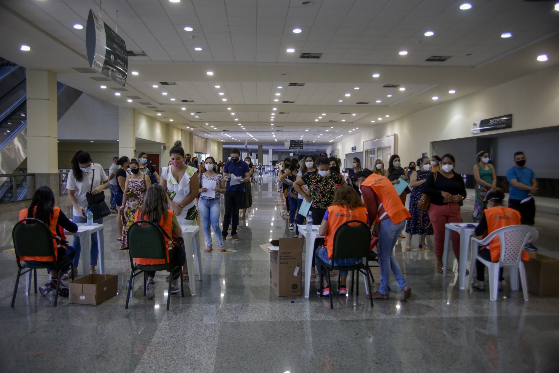 Quem chegava ao Centro de Eventos na manhã deste dia 21, feriado de Tiradentes, se deparava com uma pequena fila do lado de fora, em frente ao portão B. Agentes da prefeitura trabalhavam rapidamente para encaminhar a população ao local indicado dentro do ambiente, em busca de dar celeridade ao processo.