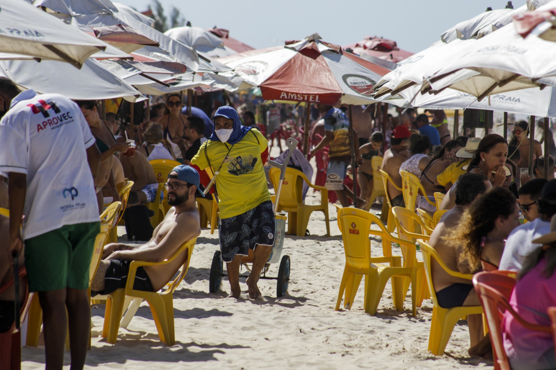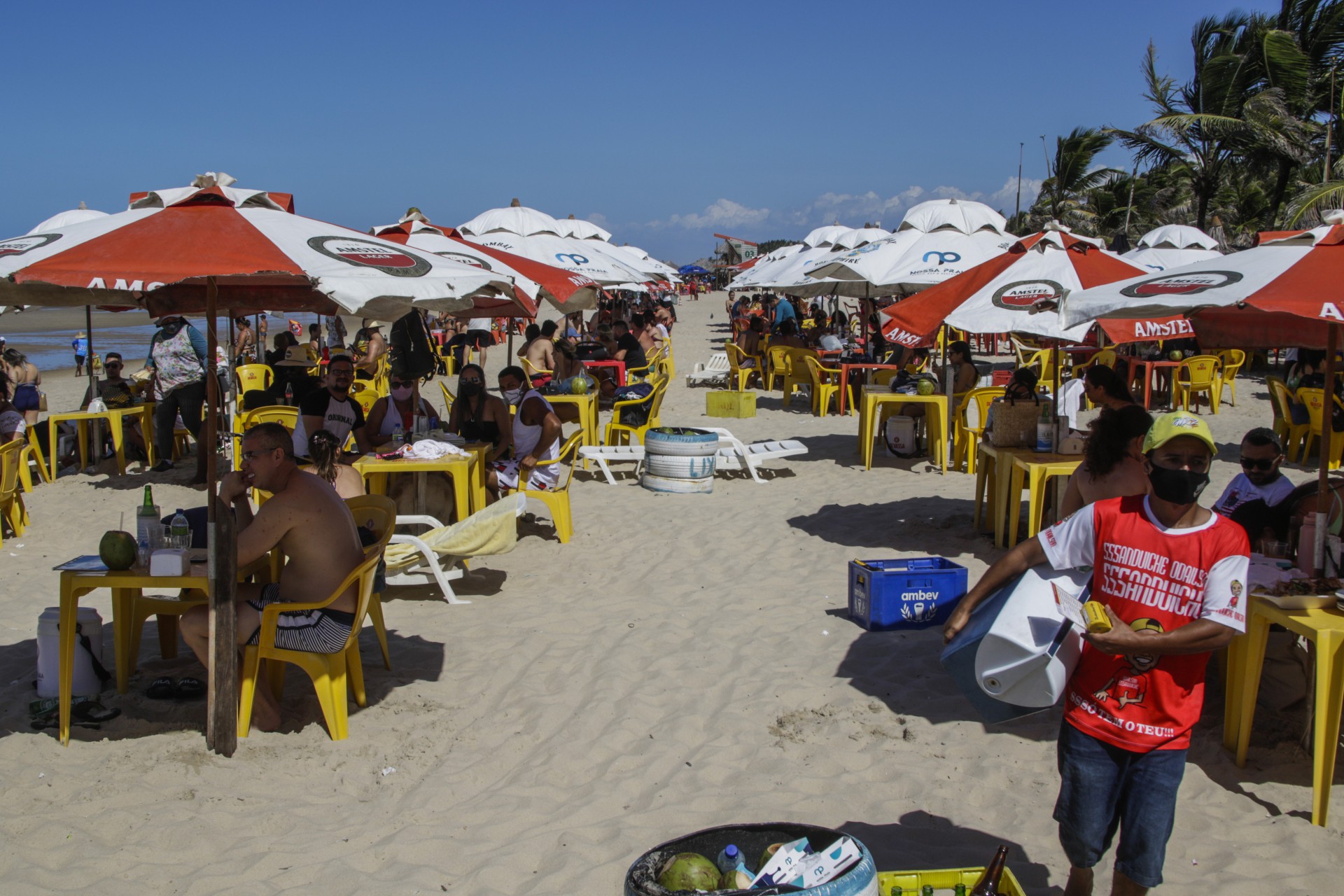 Banhistas descumprem medidas de proteção, como o uso obrigatório de máscara e o distanciamento social