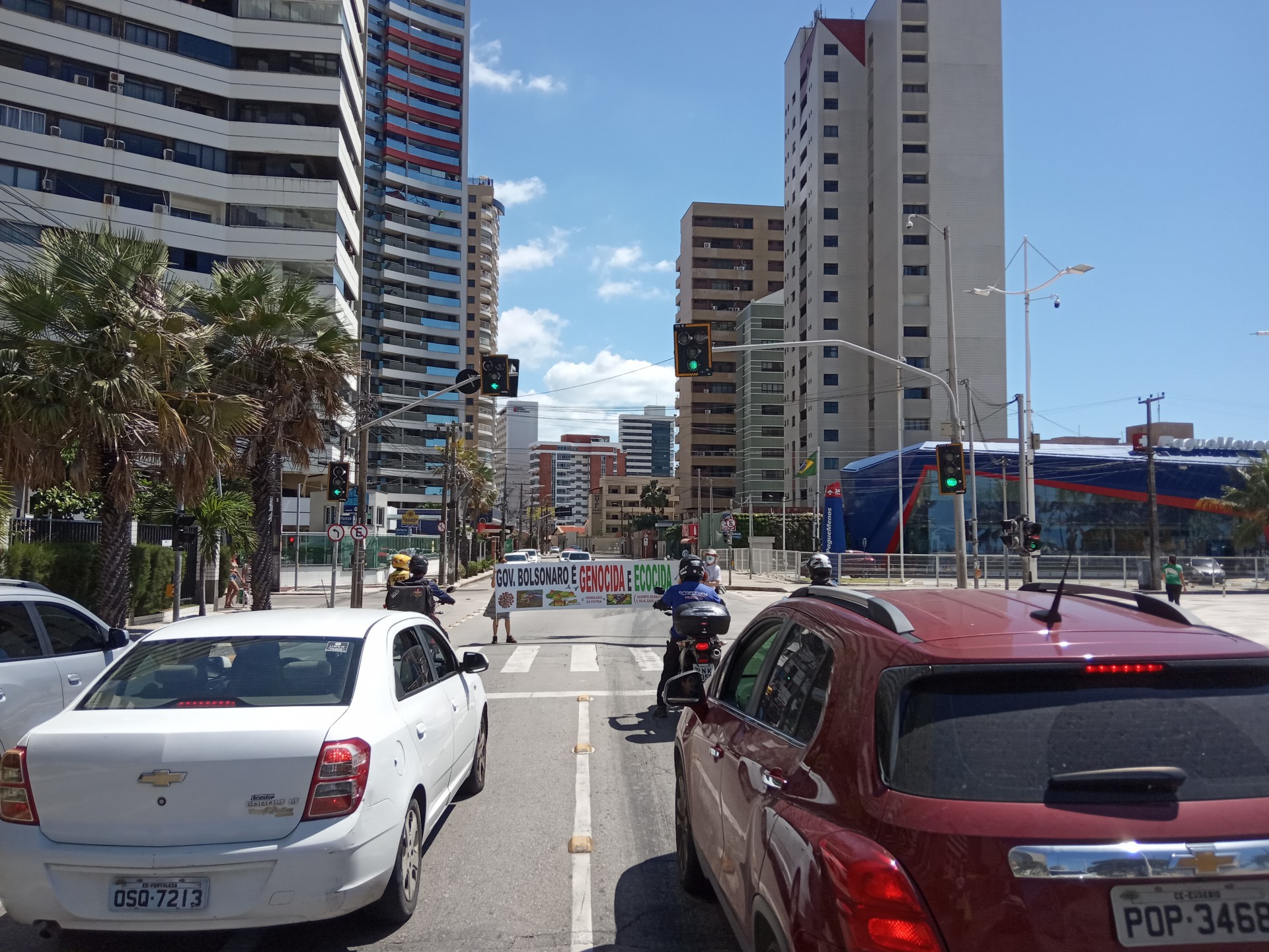 Um grupo de cerca de 20 pessoas se reuniu na avenida Beira Mar, em Fortaleza, para protestar contra o governo do presidente Jair Bolsonaro, caracterizado pela "destruição/desmontes das políticas ambientais, órgãos ambientais e dos biomas brasileiros". O ato aconteceu na manhã deste sábado, 5 de junho, dia Mundial do Meio Ambiente.