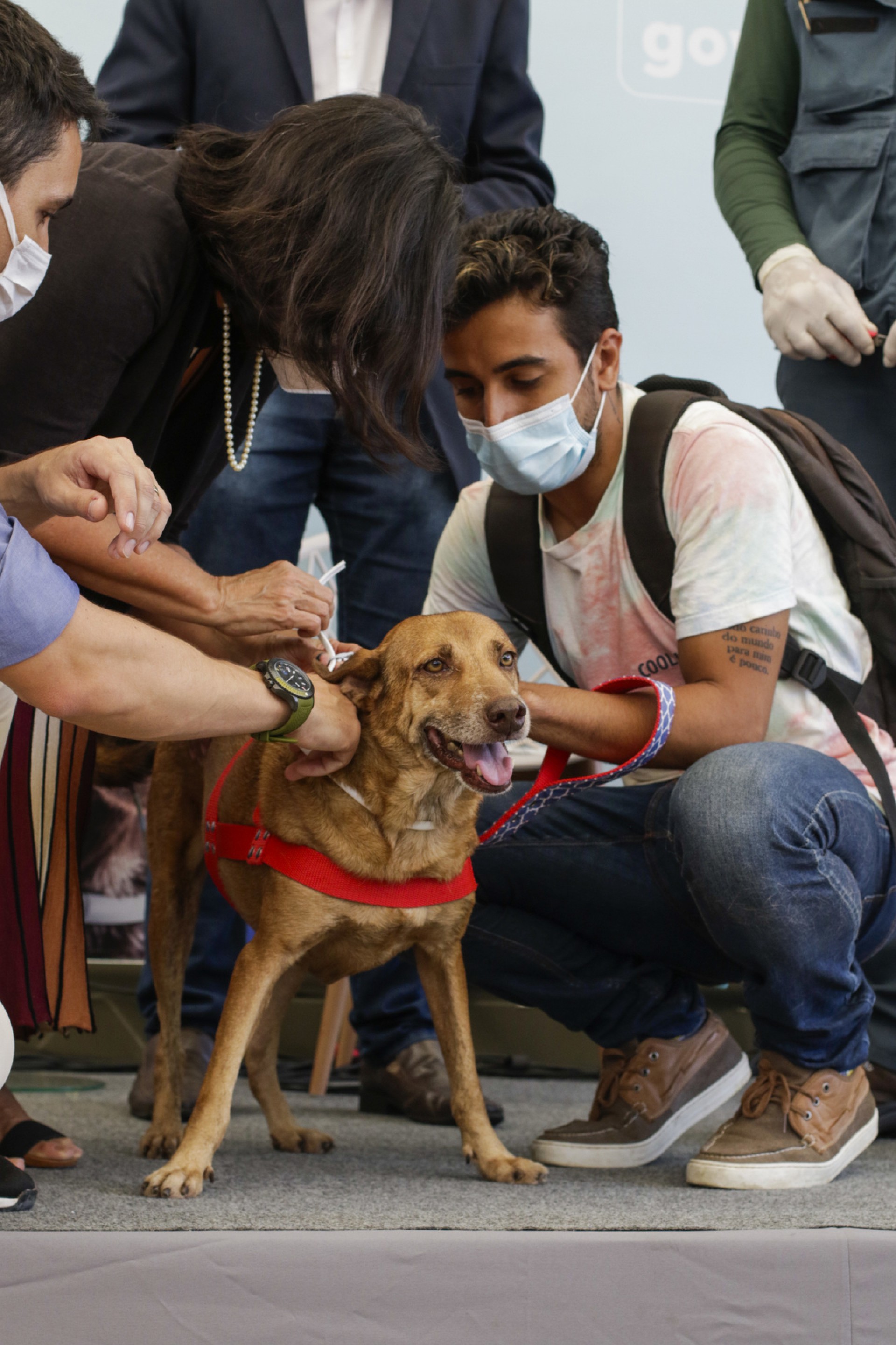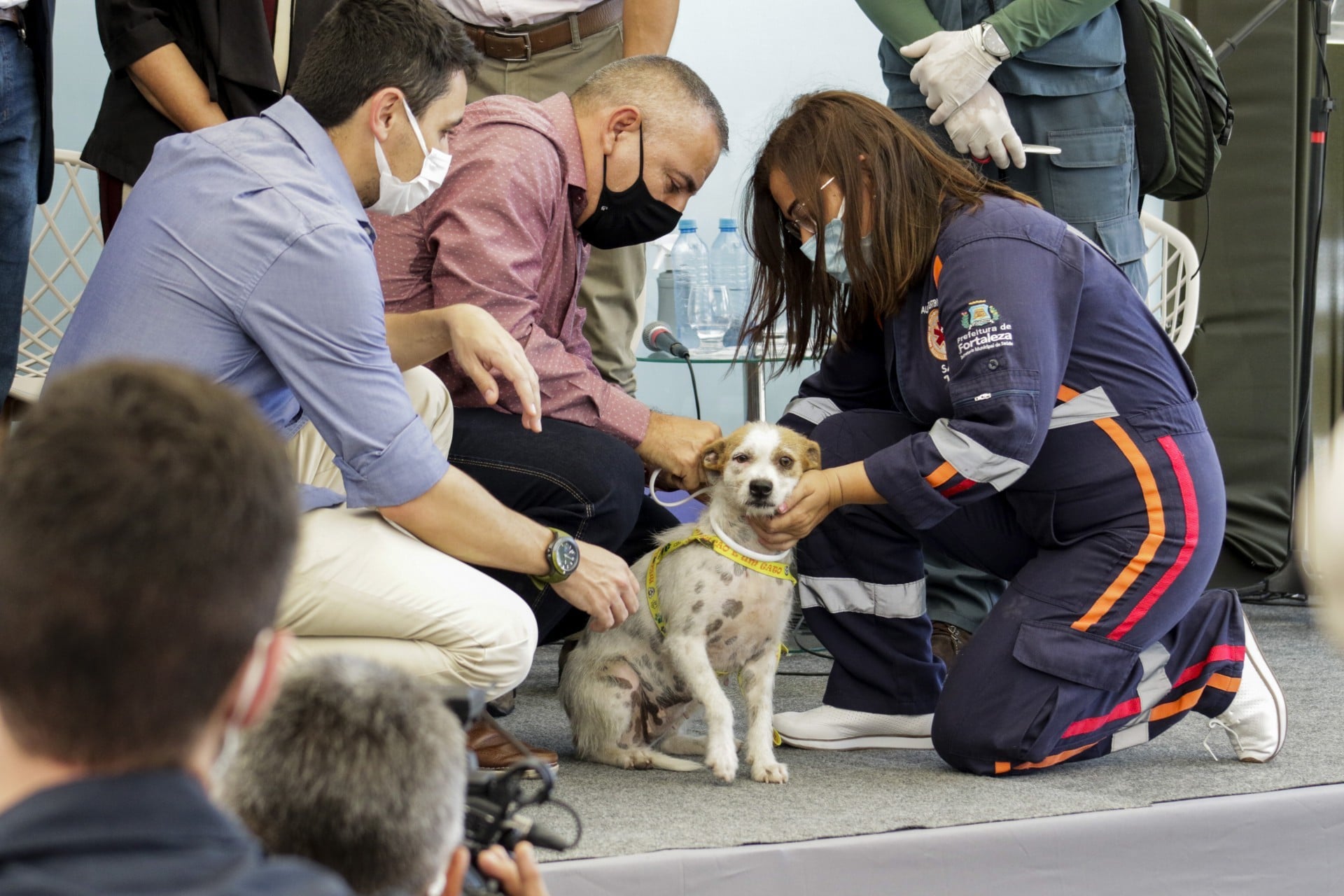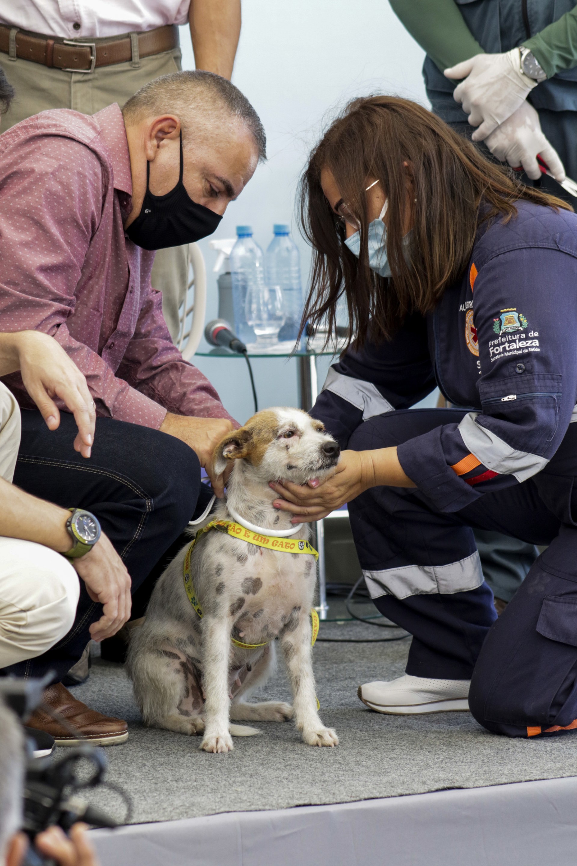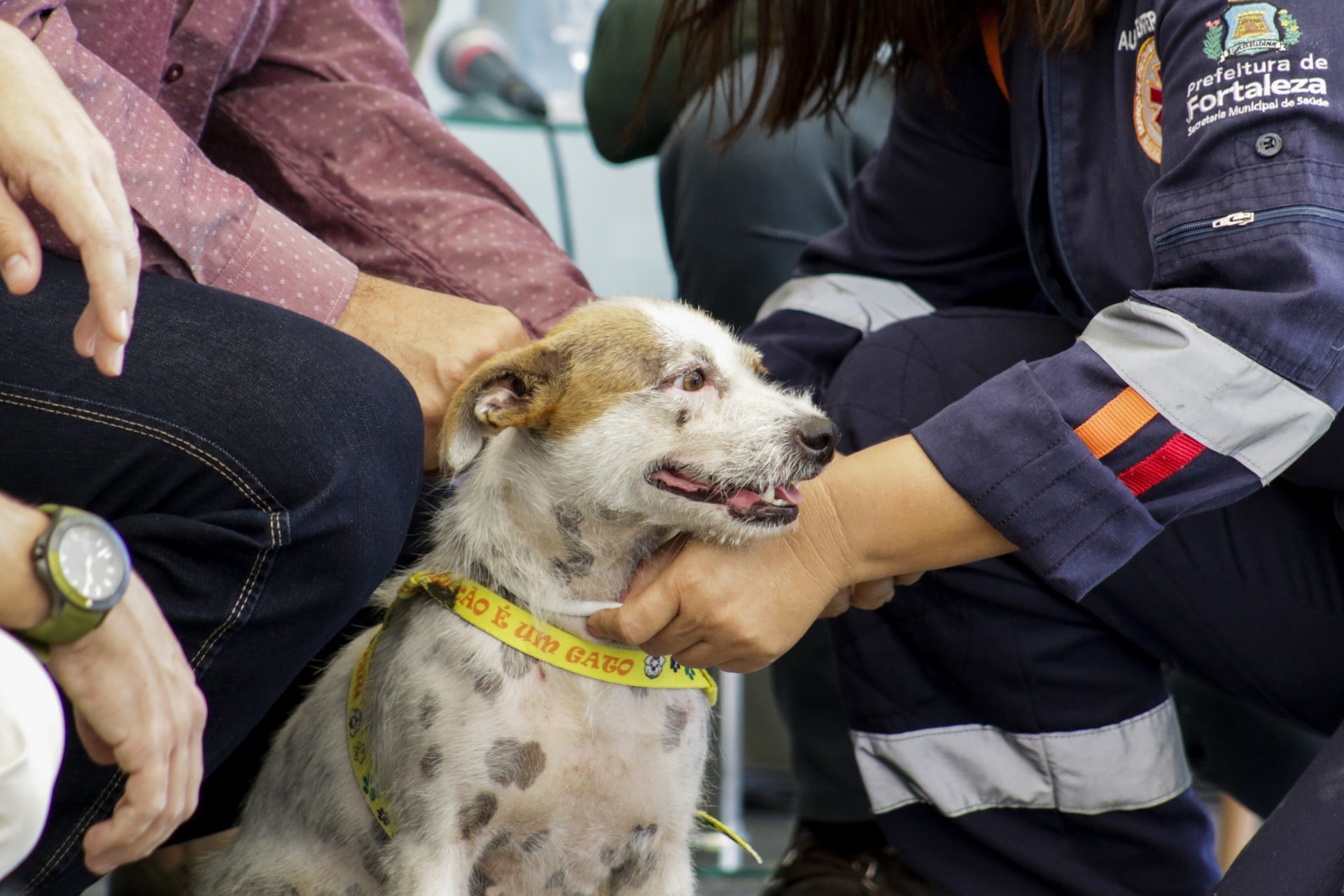 Durante a cerimônia de lançamento da campanha de encoleiramento, alguns cães já foram contemplados com as coleiras repelentes. Foi o caso do cachorrinho Codisman, que vive sob os cuidados dos colaboradores do Abrigo São Lázaro.