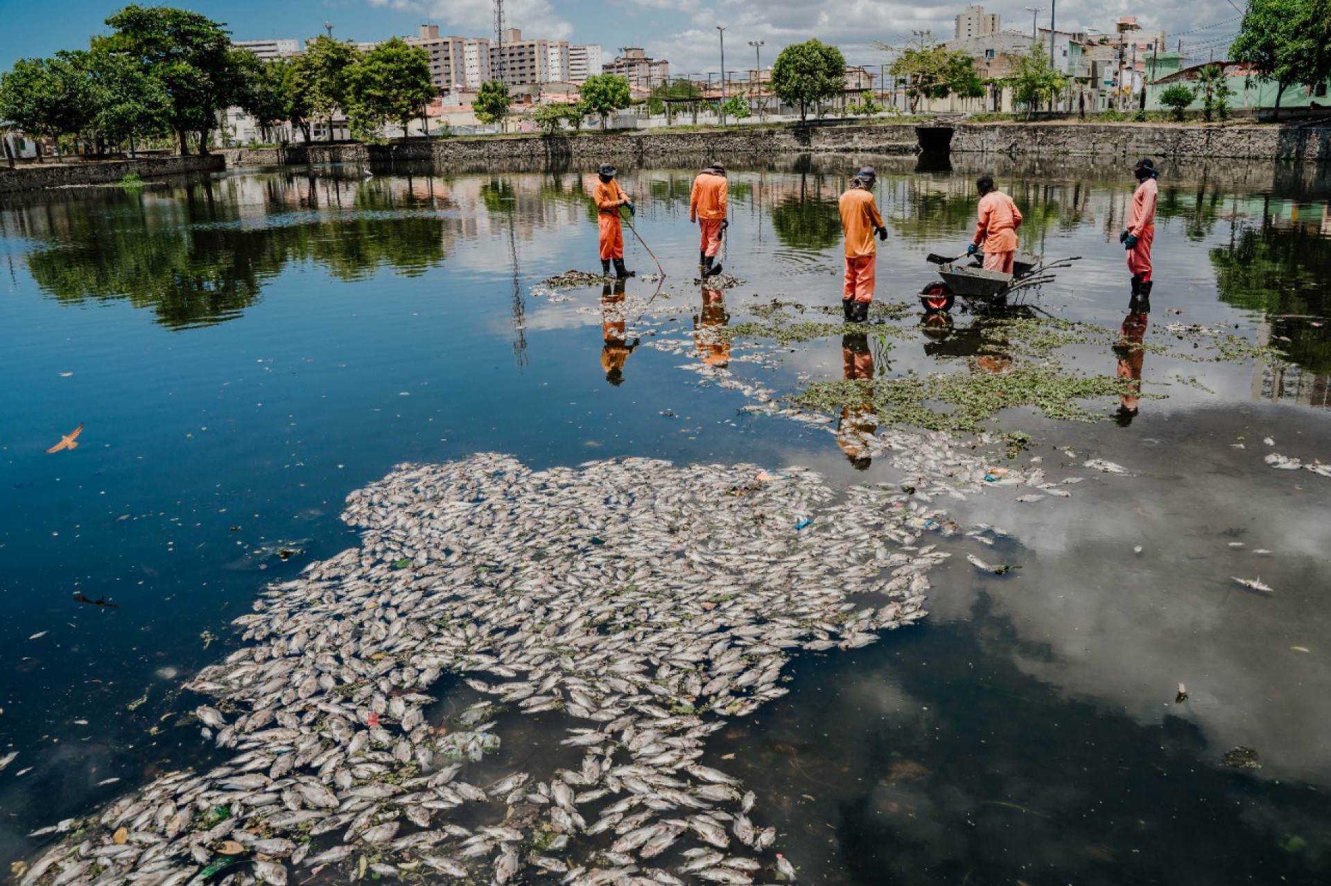 “Existem muitas casas no entorno do açude, as pessoas que vivem ali viram uma parcela de peixes mortos. Momentos depois já haviam dezenas”, conta o morador, Wescley Sacramento.