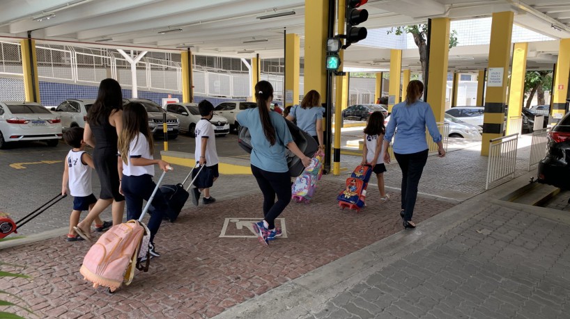 Na escola particular, o processo de retomada também é visto com bons olhos pelos pais e pelos próprios estudantes. O POVO foi até o colégio Ari de Sá Cavalcante, no bairro Edson Queiroz, e acompanhou o horário de saída dos alunos.