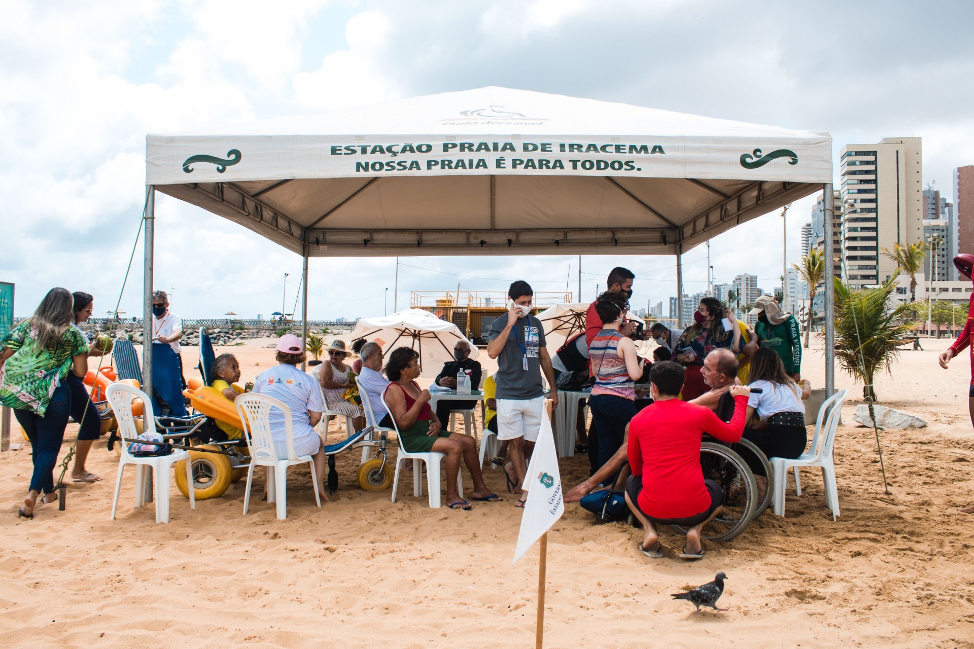 Idosos do abrigo Olavo Bilac participam de manhã inclusiva na Praia de Iracema