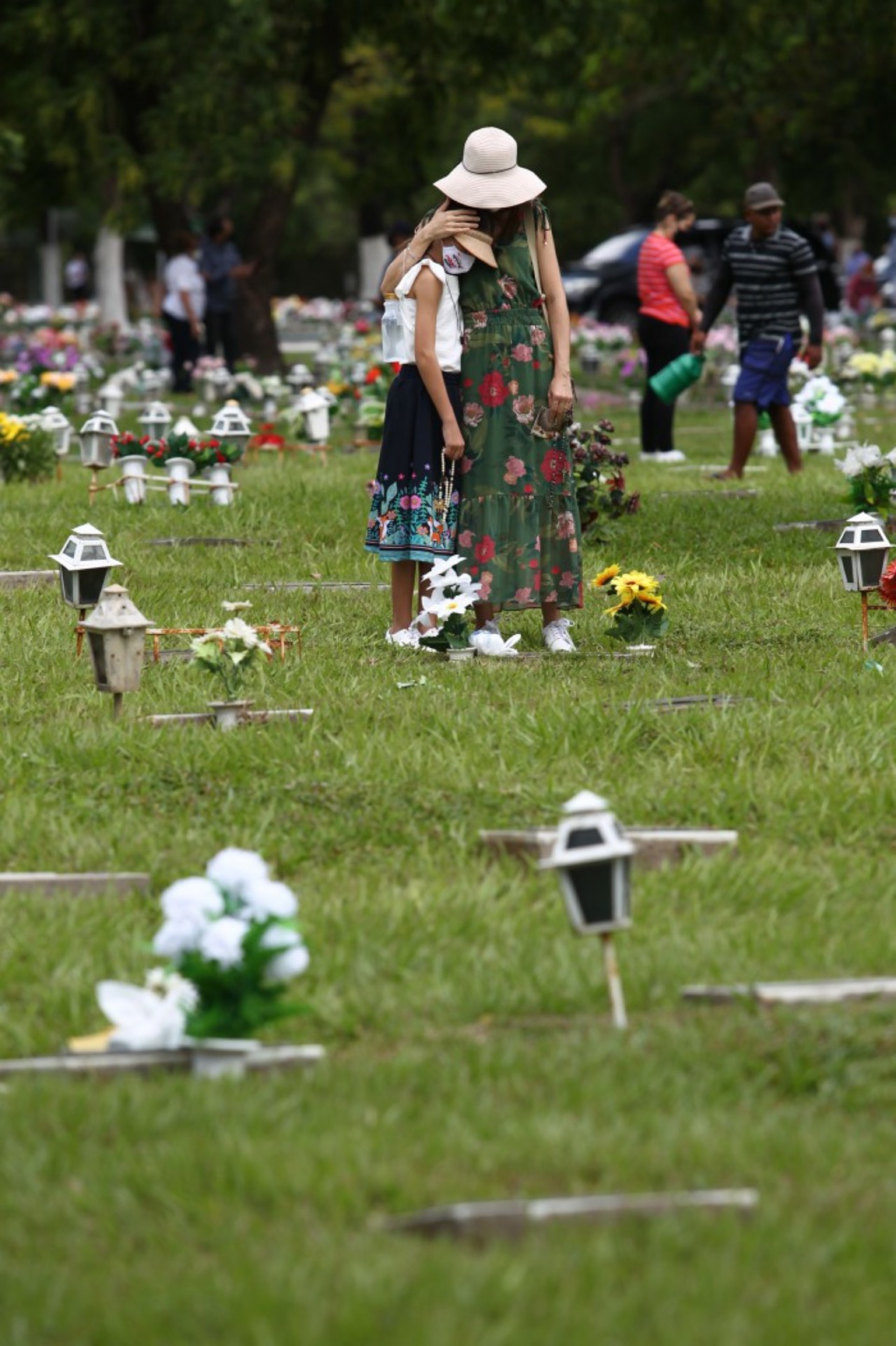 Já Maria do Carmo e a filha Janaína da Costa foram ao Parque da Paz em homenagem aos mortos pela fé cristã. "Meus parentes estão enterrados no Interior. A gente reza pelos nossos parentes, no Interior, e pelos que estão aqui, principalmente os que não têm quem venha visitar", conta a jovem.