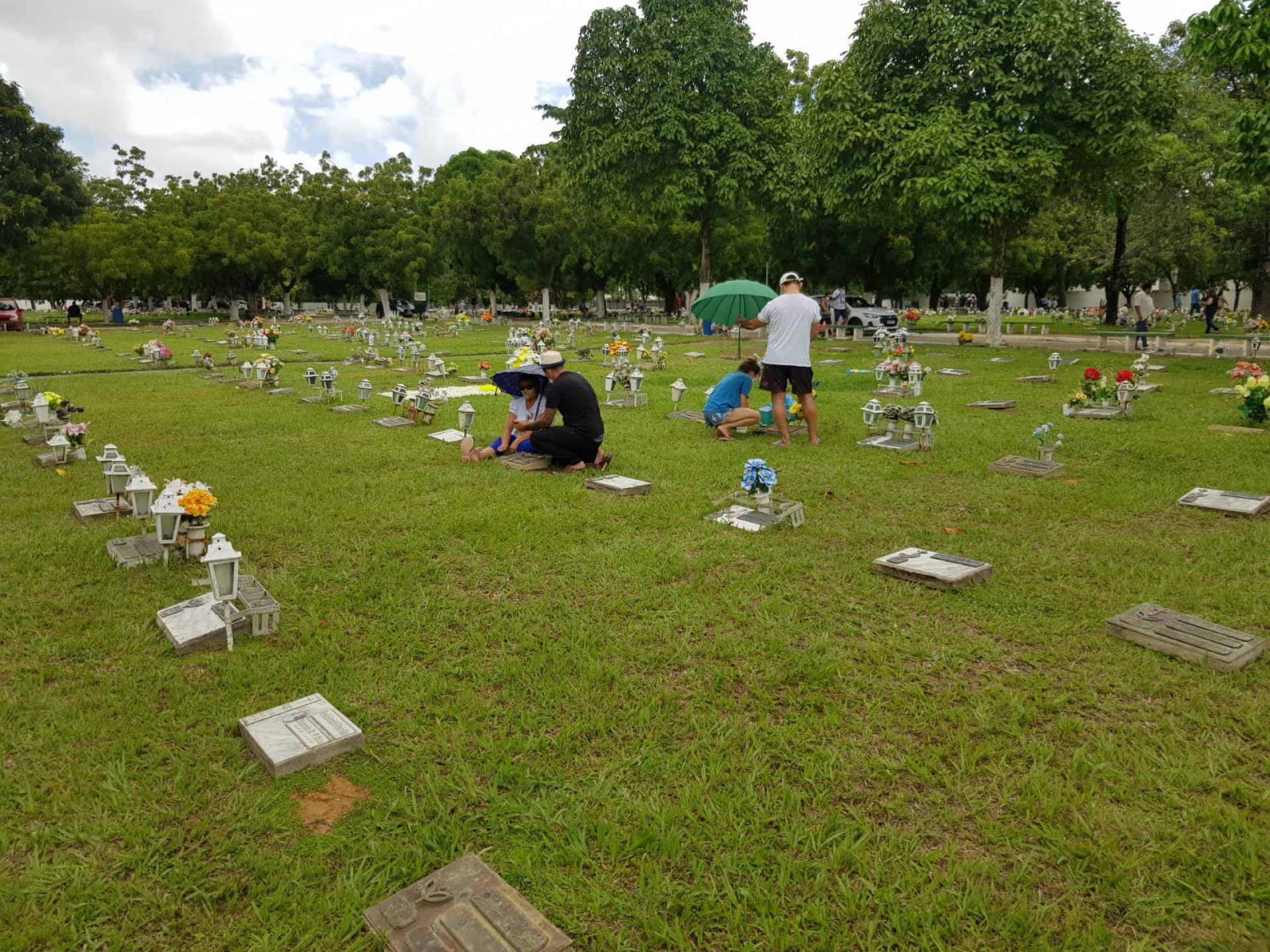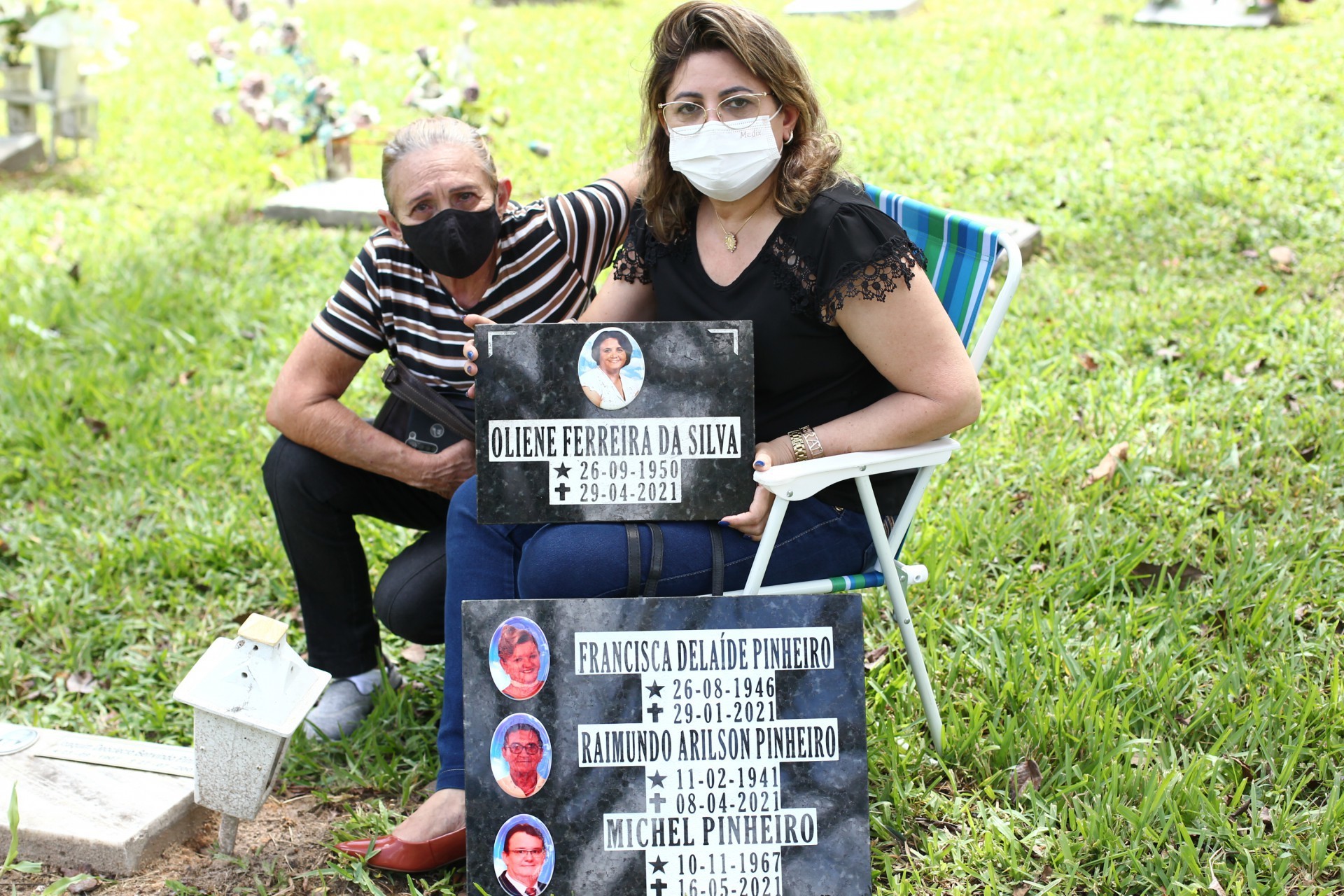 Elizabete Silva Pinheiro foi ao cemitério Parque da Paz com os filhos e as irmãs visitar quatro membros da família que faleceram no início deste ano. "Meu esposo, meu sogro e minha sogra e minha irmã faleceram de janeiro a maio", conta. Deles, o esposo, Michel Pinheiro, o sogro e a irmã estão entre as vítimas da Covid-19 no Ceará. "Fazem muita falta no nosso dia a dia e hoje é um dia de muita saudade e emoção. Mas se teve permissão de Deus, cabe à gente acolher e acreditar que eles estão em um mundo melhor que o nosso", afirma.
