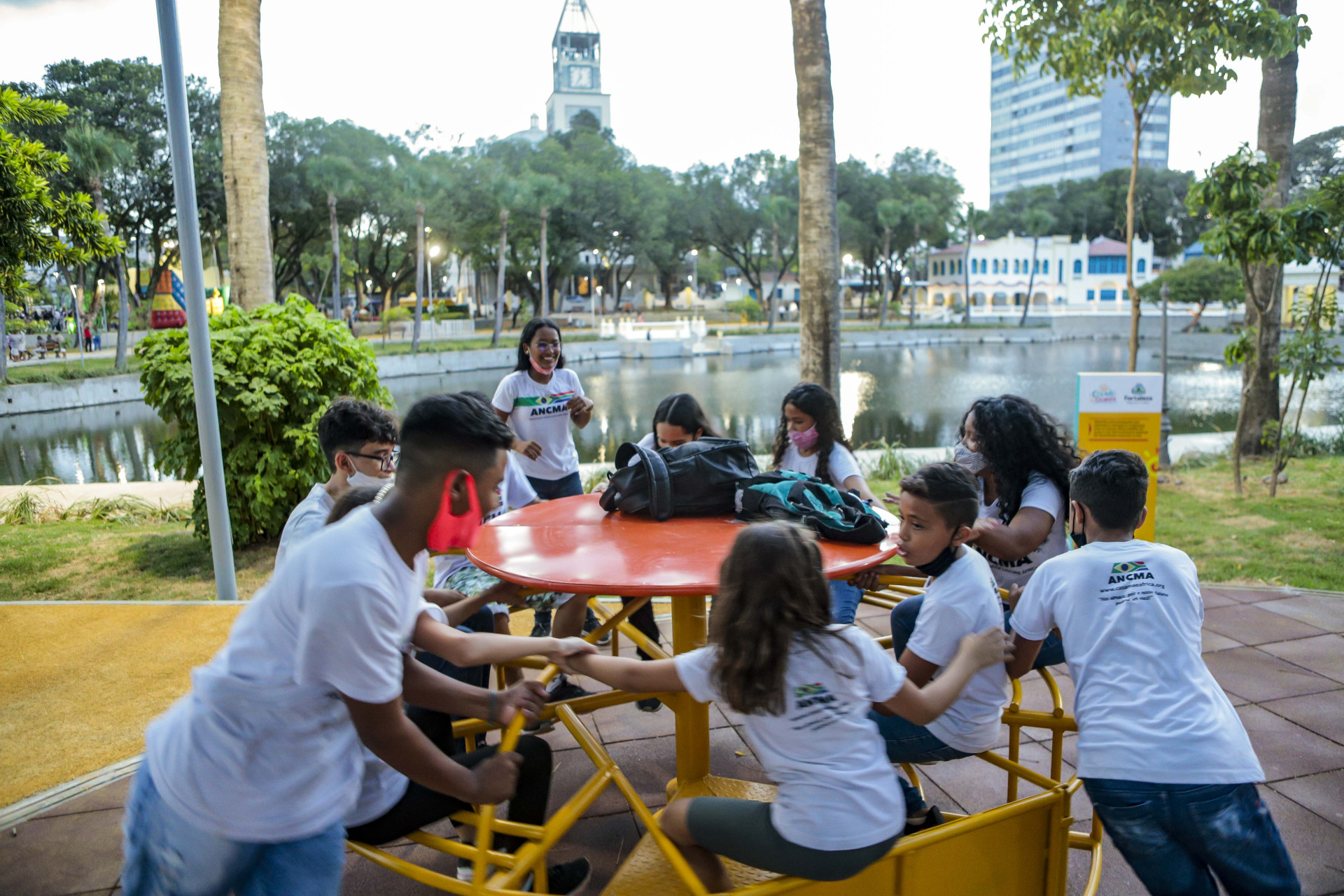 Após um ano e seis meses em reforma, a Cidade da Criança, localizada no Centro de Fortaleza, foi reinaugurada nesta terça-feira, 21. A revitalização, que recebeu investimento de R$ 8,6 milhões, havia iniciado em junho de 2020. O equipamento recebeu novo piso, instalação de mobiliários urbanos, iluminação de Led e passou por uma ampla reformulação no projeto paisagístico. As obras ainda promoveram a restauração esculturas e monumentos históricos, além da despoluição do lago central.
