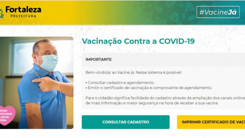 Portal é responsável por consultar cadastro e agendamento da vacina contra a doença em Fortaleza, além de emitir o certificado de vacinação e comprovante de agendamento