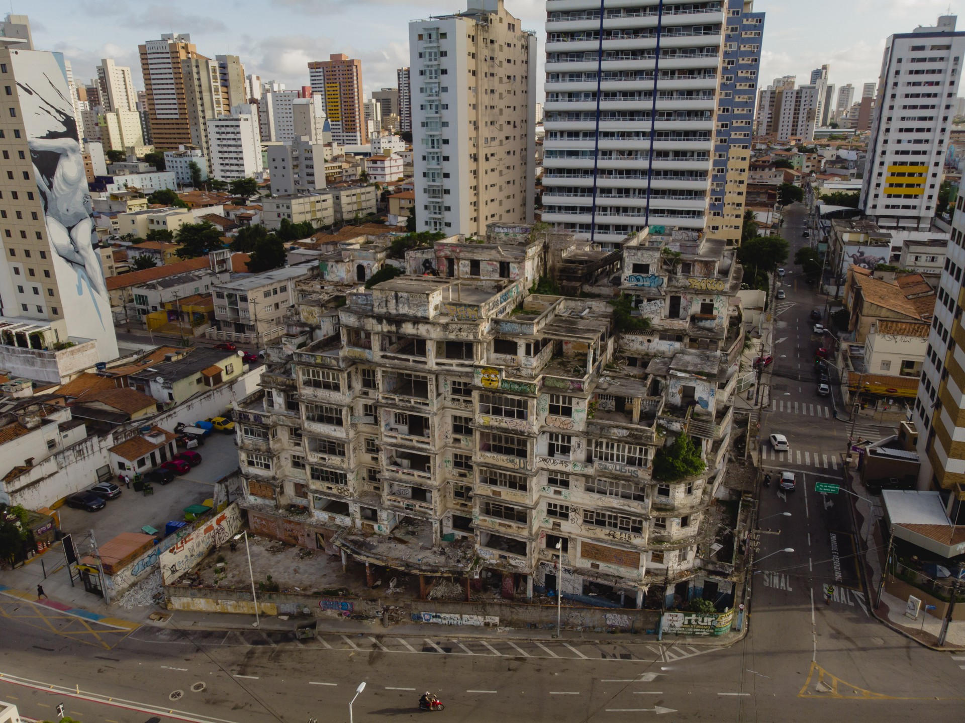 Chegar à esquina da avenida Historiador Raimundo Girão com a rua dos Arariús, na Praia de Iracema, é se deparar com a história de luxo e de abandono que forma parte da cidade de Fortaleza. Mesmo com apenas oito pavimentos, o Edifício São Pedro se mantém imponente há sete décadas. O enredo de disputas entre tombamento, reestruturação e demolição do local ganhou mais um episódio na última semana. O Governo do Ceará pretende transformar o prédio em Distrito de Economia Criativa.