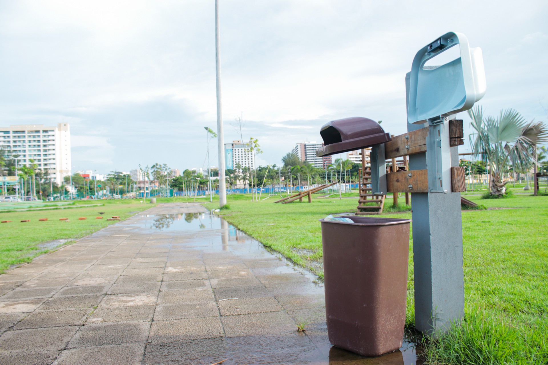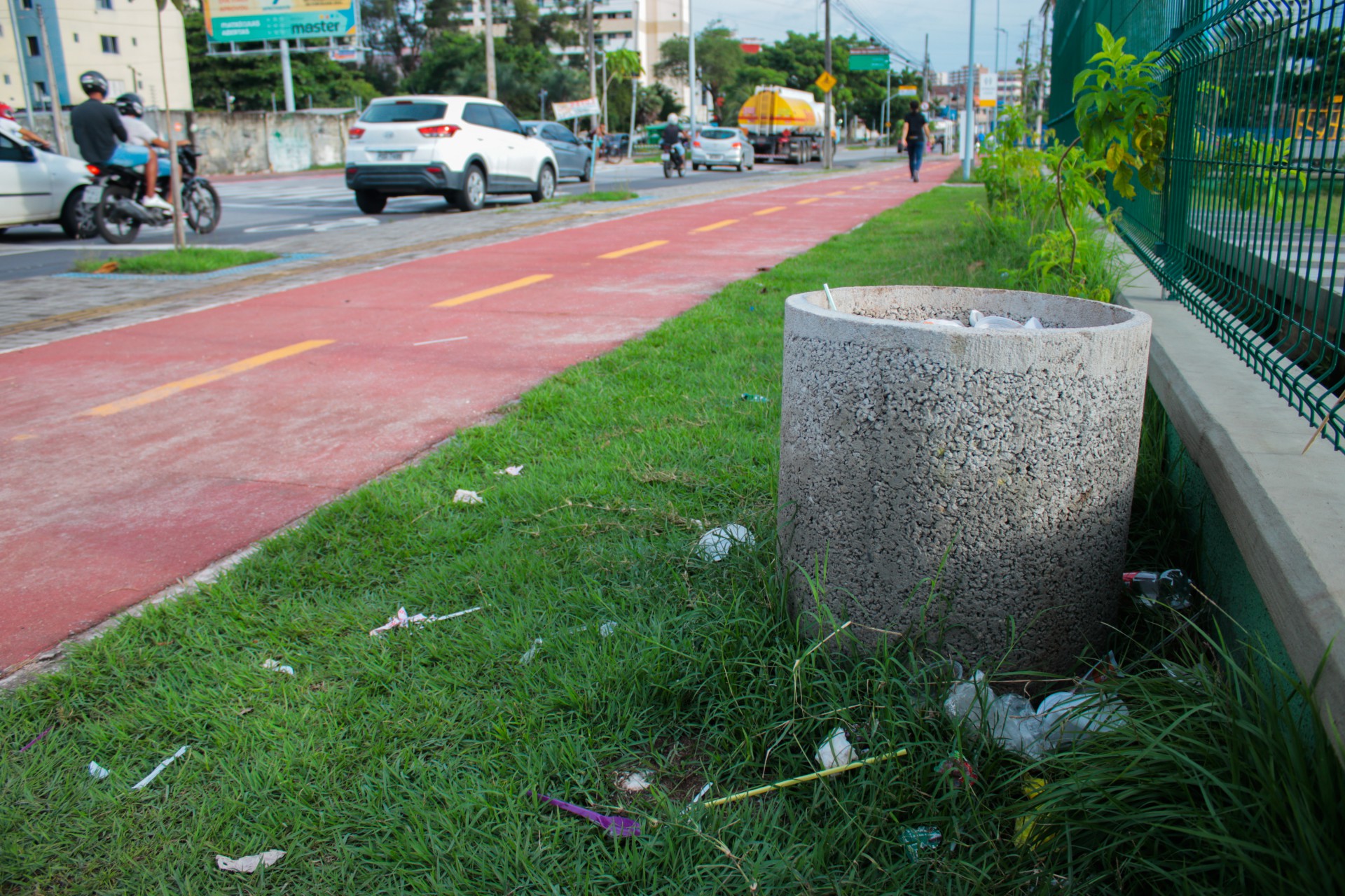 Na data em que a obra foi entregue, havia 26 conjuntos de lixeiras seletivas e outras 27 lixeiras de concreto espalhados pelo local. Nesta segunda-feira, 4, durante visita ao parque, O POVO constatou que a maioria dos pontos de descarte já não contavam mais com lixeiras instaladas. O problema atinge principalmente as lixeiras seletivas, que são feitas de plástico.