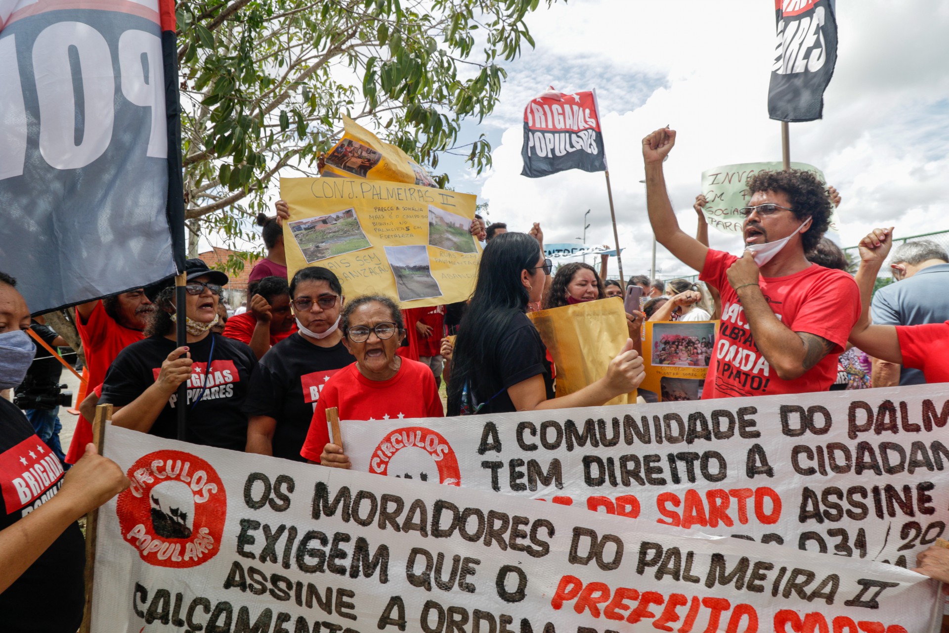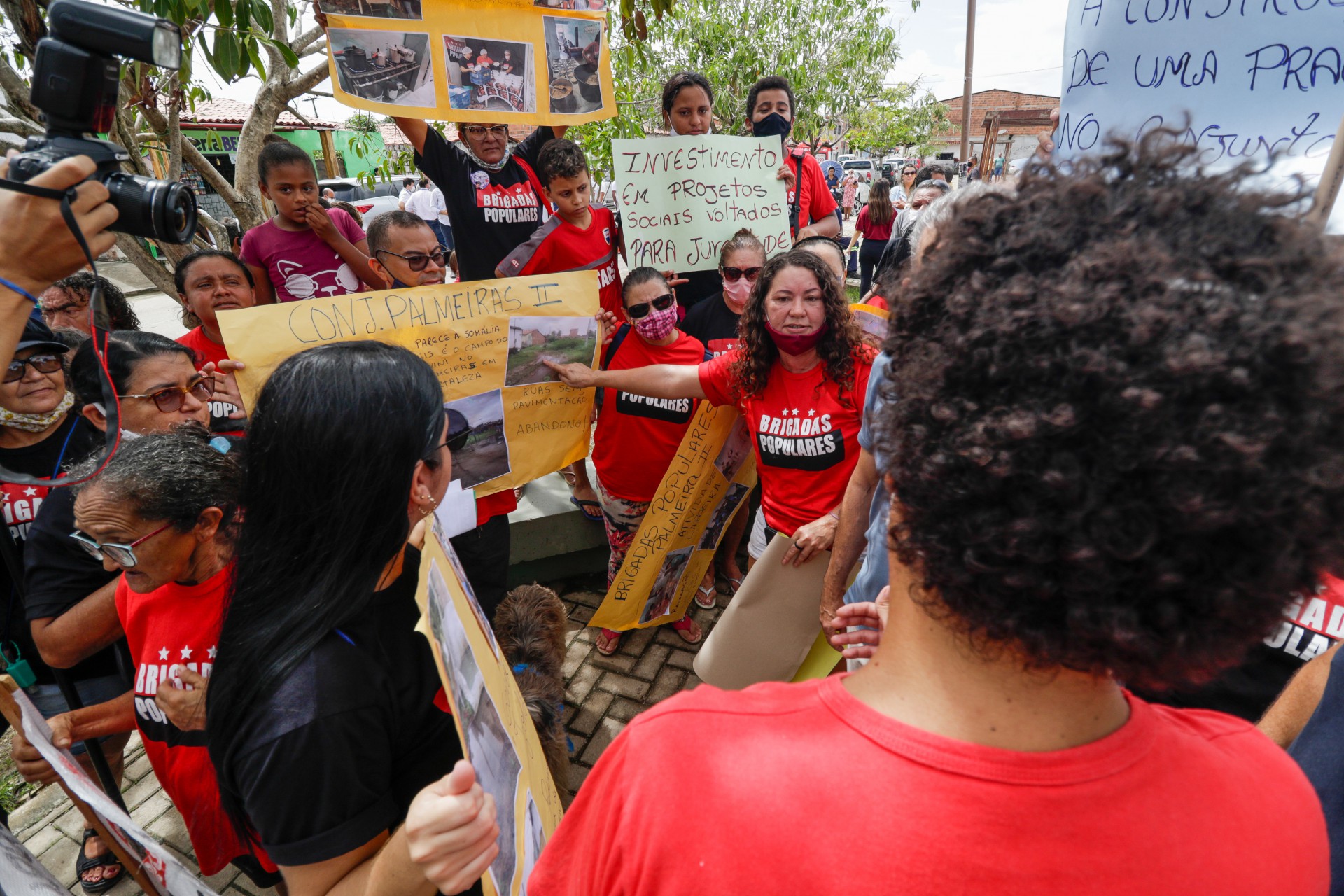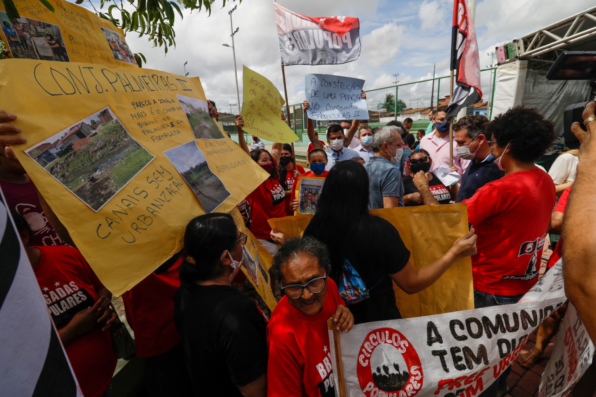 O grupo de moradores afirma que o esgotamento sanitário assinado hoje e a conclusão de outras obras, como a Pré-Urbes do Cocó, não chegaram à comunidade. Além disso, a Brigada Popular aproveitou a presença do prefeito José Sarto (PDT) para exigir dele a assinatura do RDC 031/20, um projeto para a drenagem das calçadas do Conjunto Palmeiras.