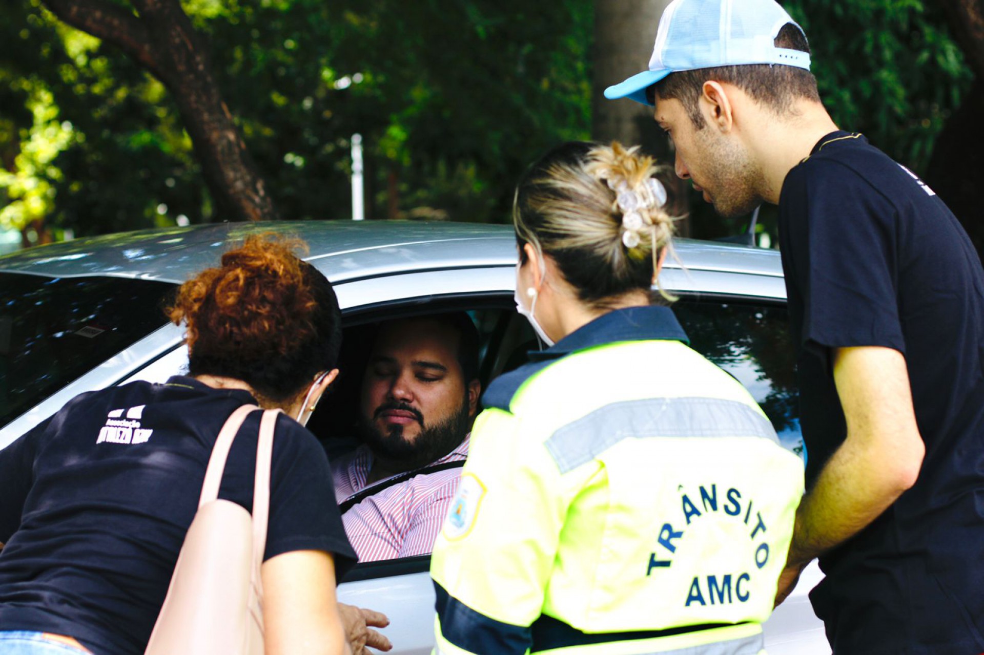 Agentes da Autarquia Municipal de Trânsito e Cidadania (AMC) realizaram ação educativa de conscientização sobre o direito ao credenciamento especial de pessoas com Transtorno do Espectro Autista (TEA) às vagas prioritárias, na manhã desta terça-feira, 26. A iniciativa teve a parceria da Associação Fortaleza Azul (FAZ), que é composta por familiares de pessoas com autismo, e distribuiu panfletos informativos sobre o transtorno aos condutores que passavam pela Praça das Flores, no bairro Aldeota.