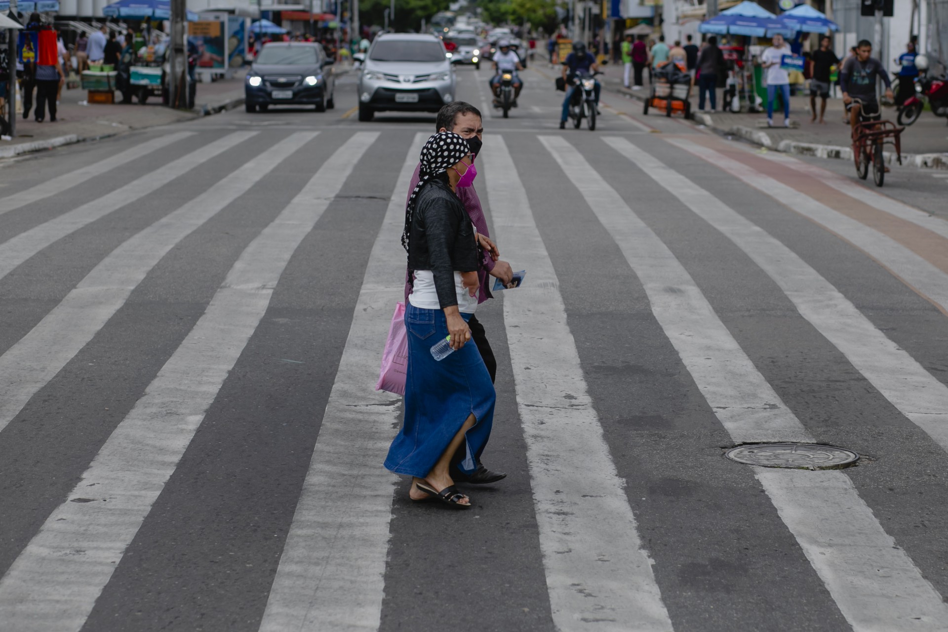 Átila Melo e sua esposa Iranilda Melo moram em Aracati e vêm à Fortaleza com frequência para fins de saúde. Atravessando a faixa gigante, ele comenta que a intervenção trouxe um pouco mais de segurança à via movimentada, e traz sugestões para aperfeiçoar ainda mais o tráfego de pedestres no local. "A faixa é ótima para pessoas idosas que atravessam a rua, mas eu acho que poderia melhorar com a presença mais constante de guardas aqui. A revitalização da faixa também é importante, não deixar que ela se apague", diz.