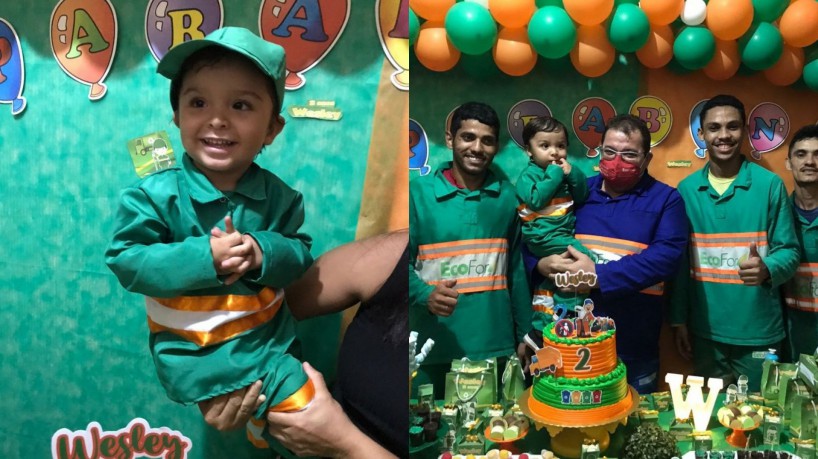 Nada de Homem-Aranha ou Super-Homem, os verdadeiros “heróis” para o pequeno Wesley Mendes, de 2 anos, são os coletores de lixo de Fortaleza. O menino, que fez aniversário nessa quarta-feira, 11, no Joaquim Távora, ganhou uma festa preparada pela família com o tema de Ecofor Ambiental, empresa responsável pela coleta de lixo na cidade.
