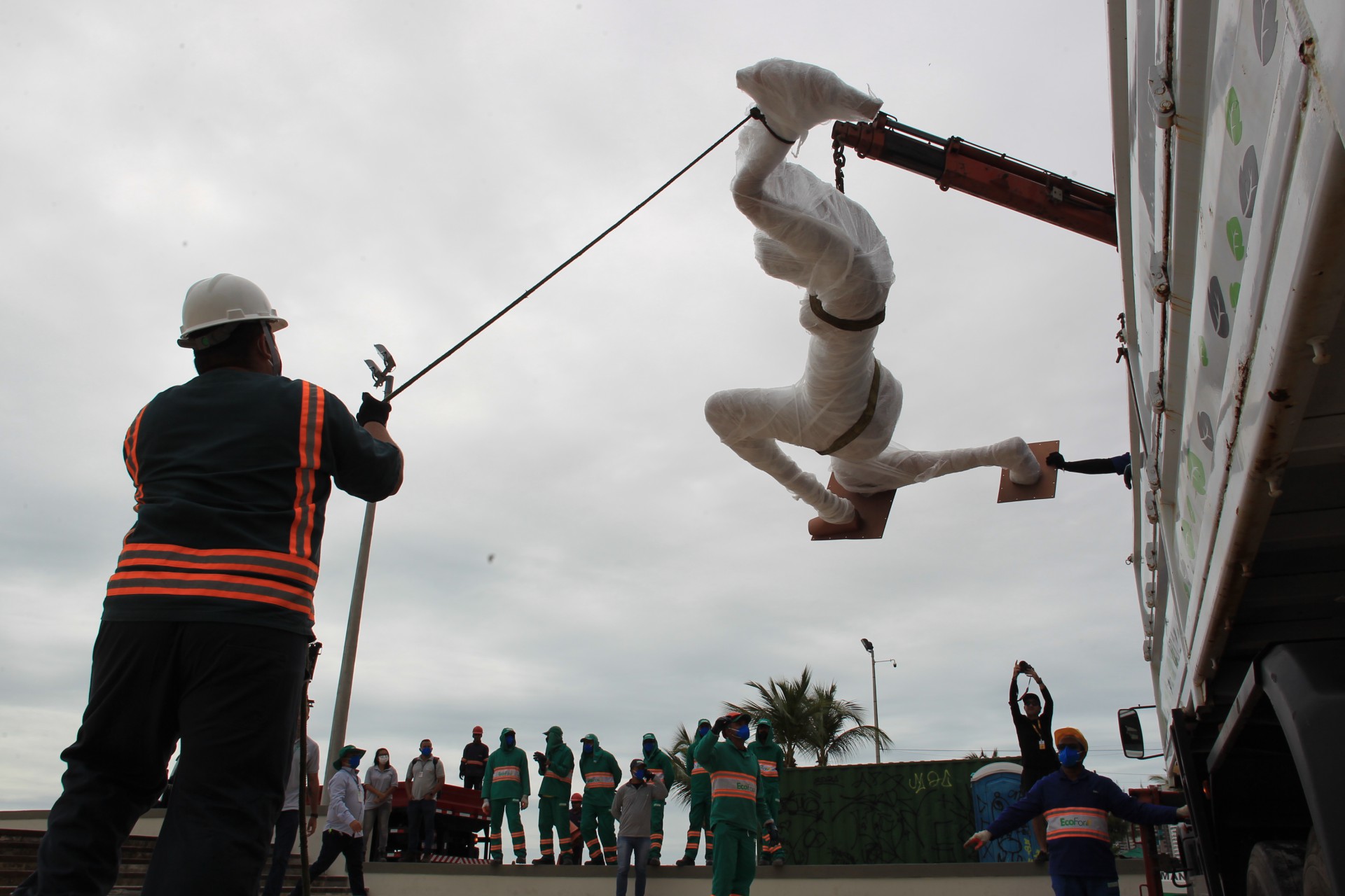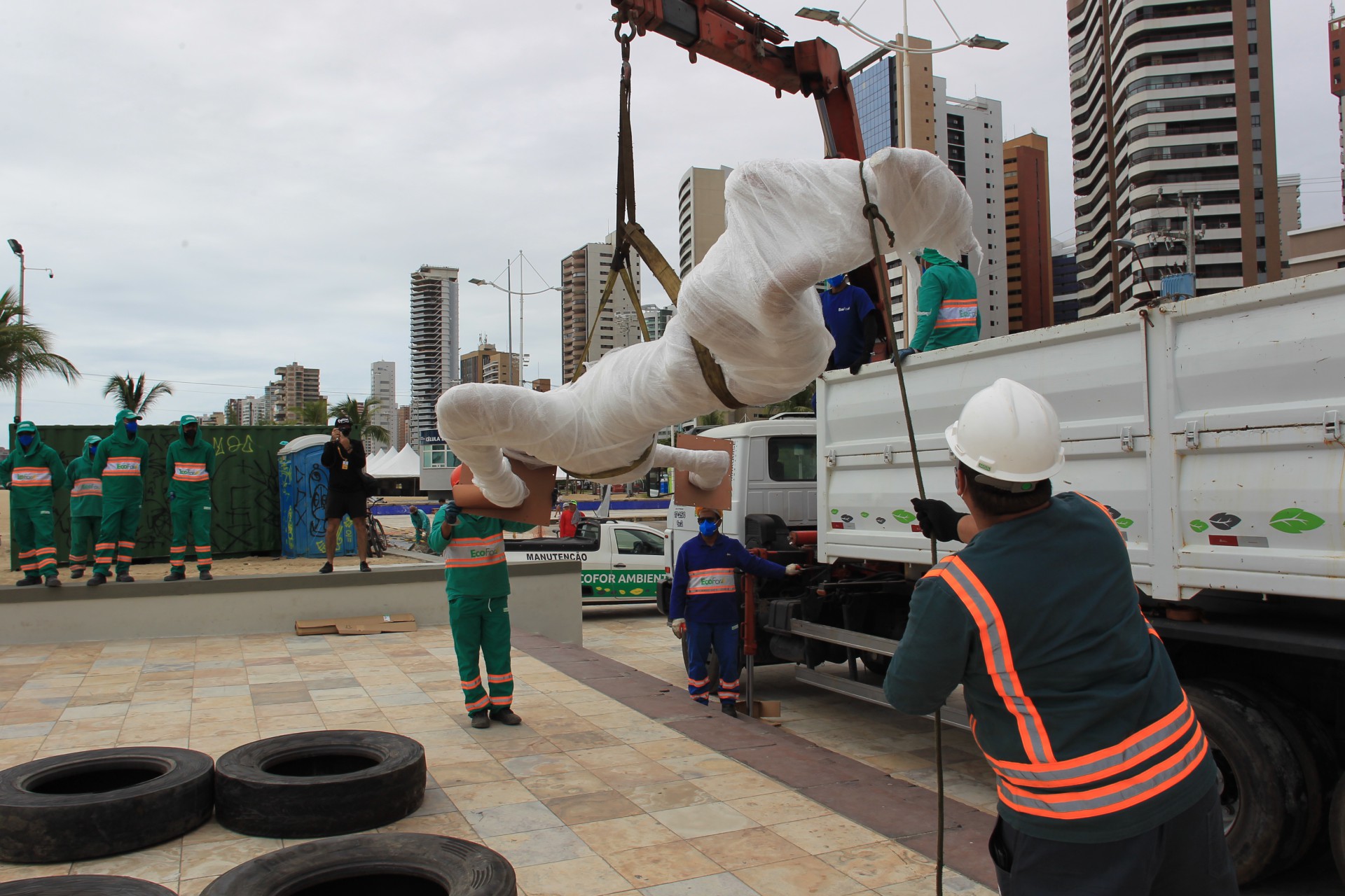 Após 2 meses, estátua Iracema Guardiã é recolocada em sua base na Beira Mar