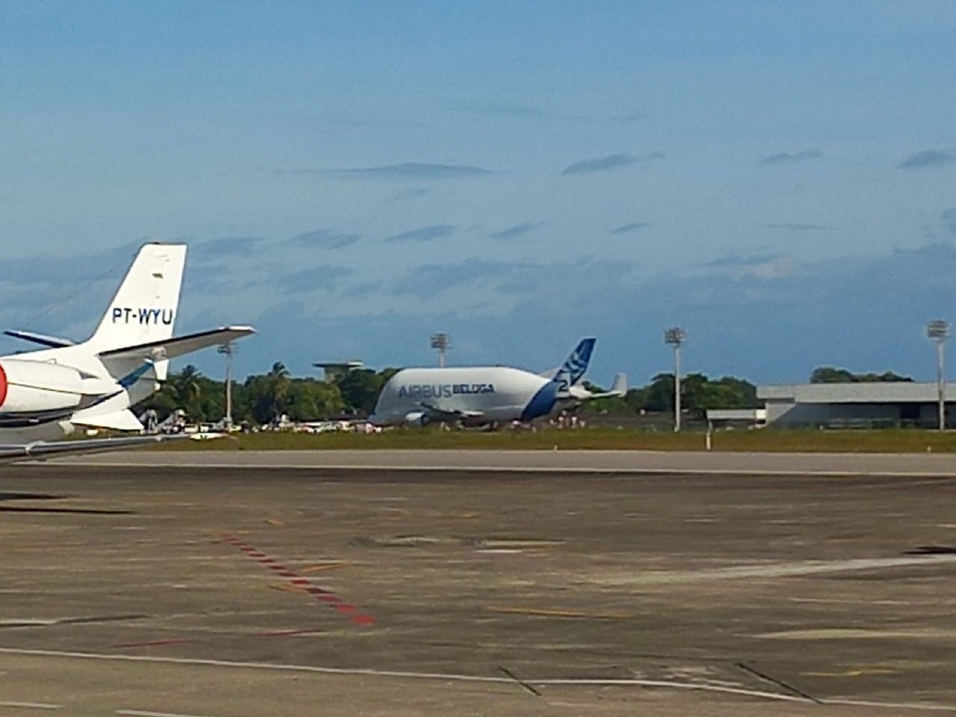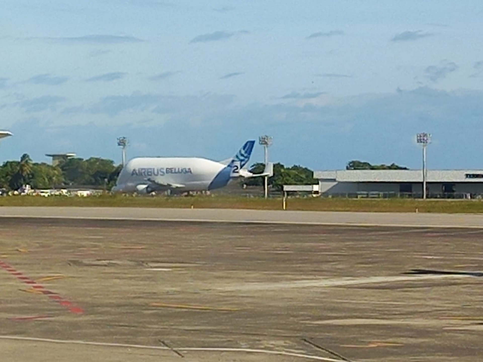 Beluga pousa em Fortaleza: veja fotos da chegada do avião que parece uma baleia