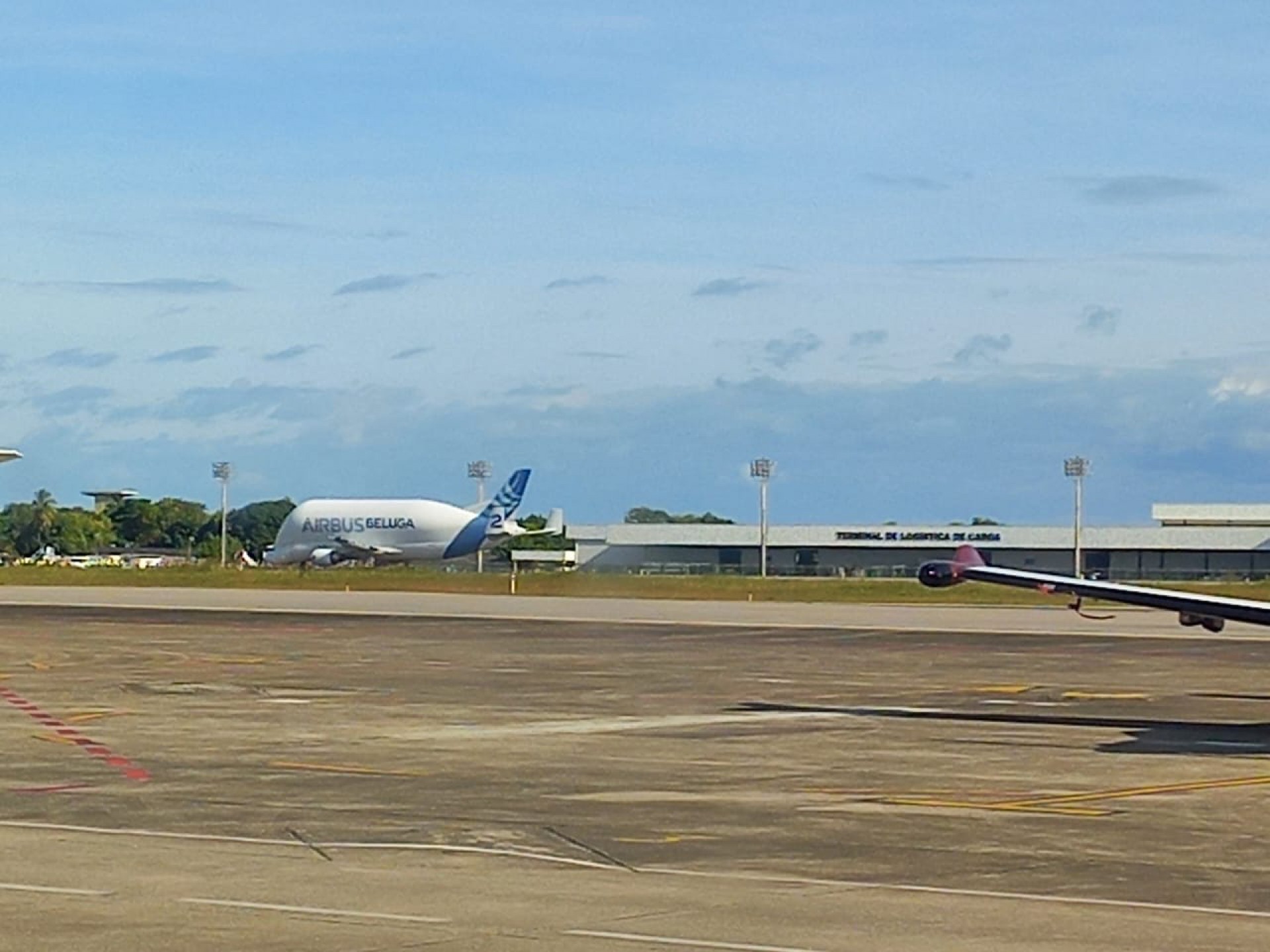 O avião Beluga pousou em Fortaleza por volta das 15h30 deste domingo, 24, após dois adiamentos