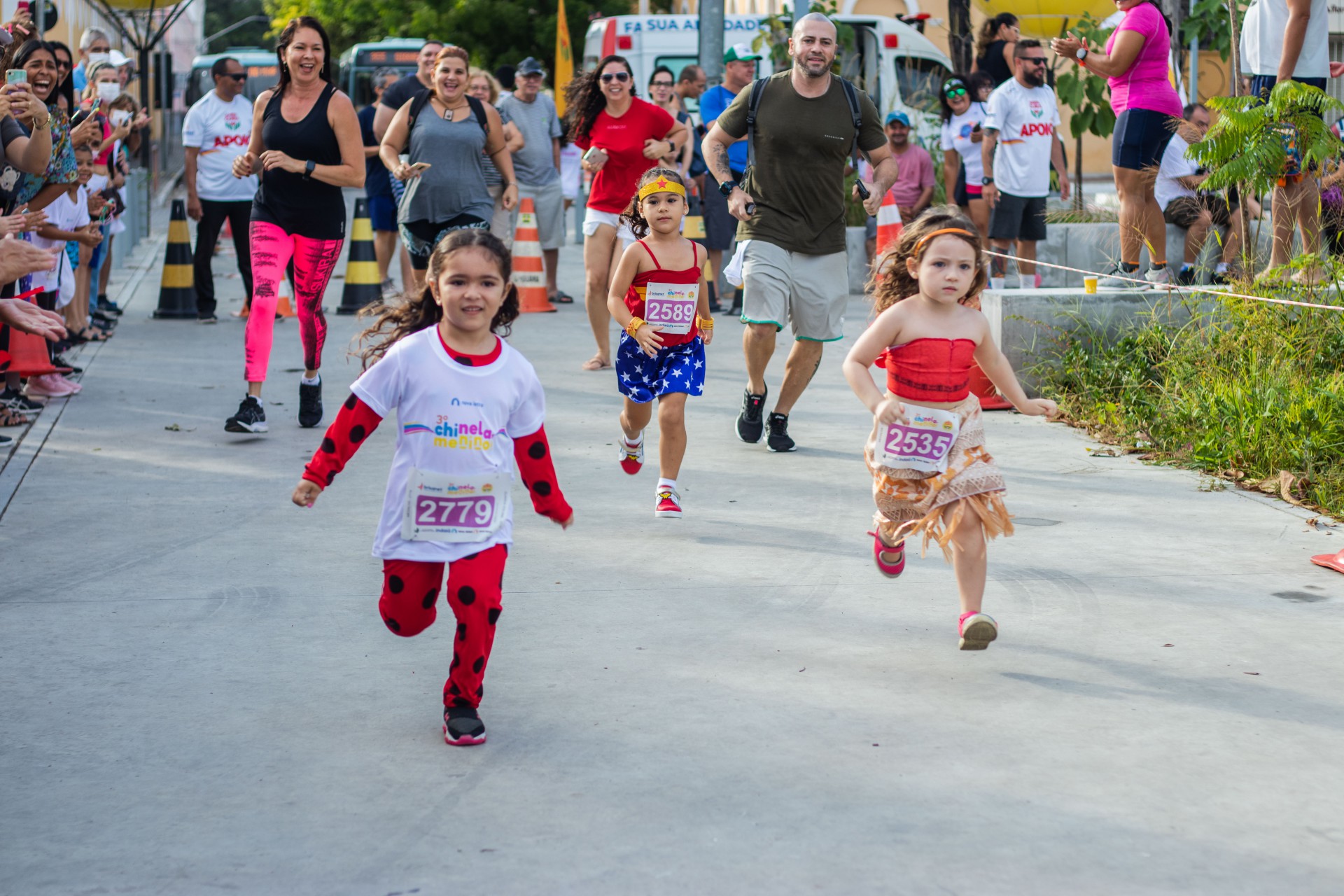 Quem aproveitou a chuva do final de semana para dormir até mais tarde perdeu a oportunidade de participar ou prestigiar a corrida mais fofa de Fortaleza. Trata-se da terceira edição do “Chinela, Menino!”, corrida com crianças e adolescentes de até 14 anos, na qual os corredores competem fantasiados. Das 300 vagas, 262 pequenos foram inscritos.