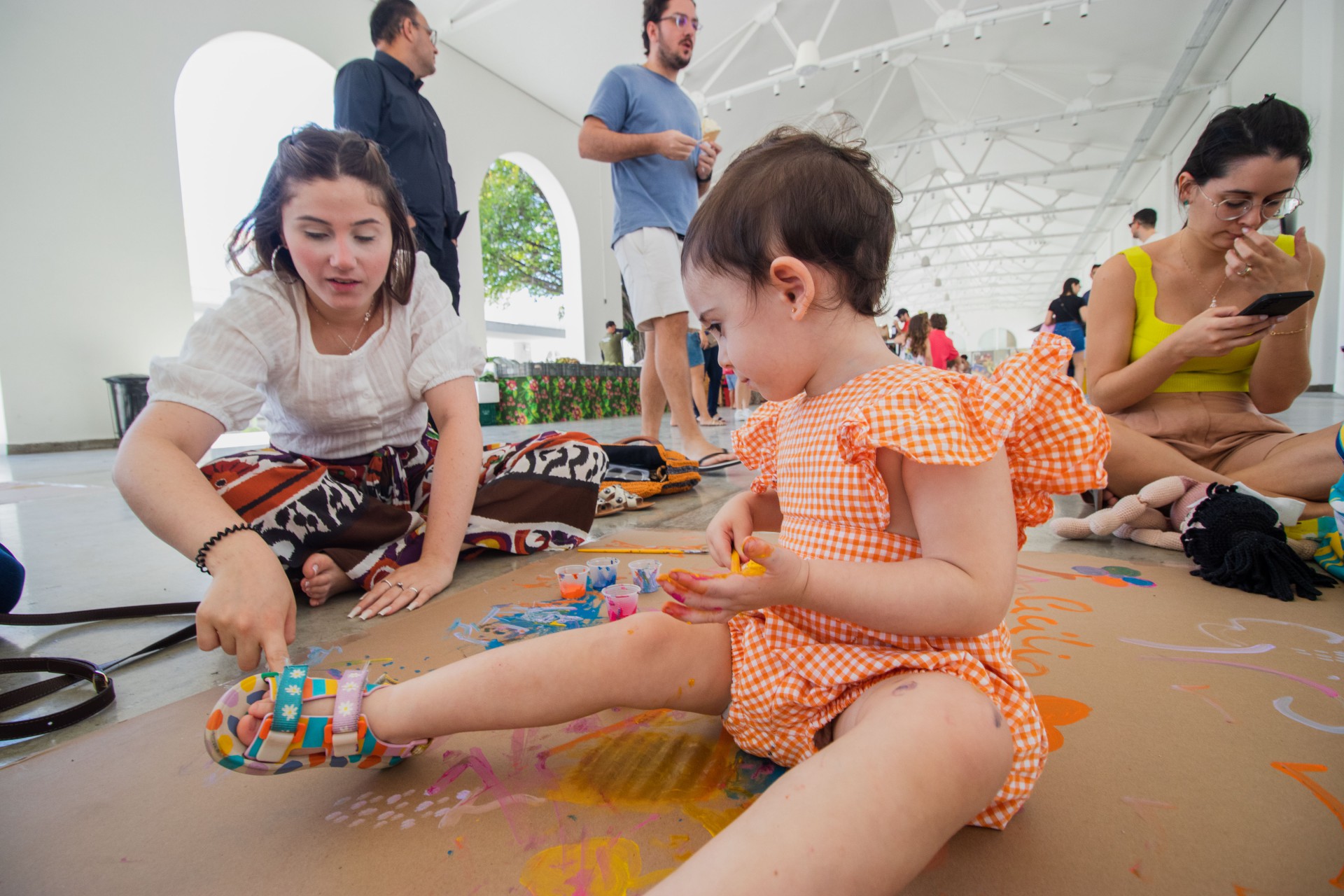 Durante a apresentação do Maracatu, inclusive, as crianças mal conseguiam ficar quietas. Queriam acompanhar a coreografia, dançar com os pais ou simplesmente ficar sentados admirando, hipnotizados, a movimentação. No espaço de pinturas, a oportunidade de interagir com outras crianças também as motivava a tirar os sapatos e correr pelo complexo ou dançar ao som das músicas selecionadas pela DJ Ana Mundim, flutuando entre a música house e outras brasilidades.