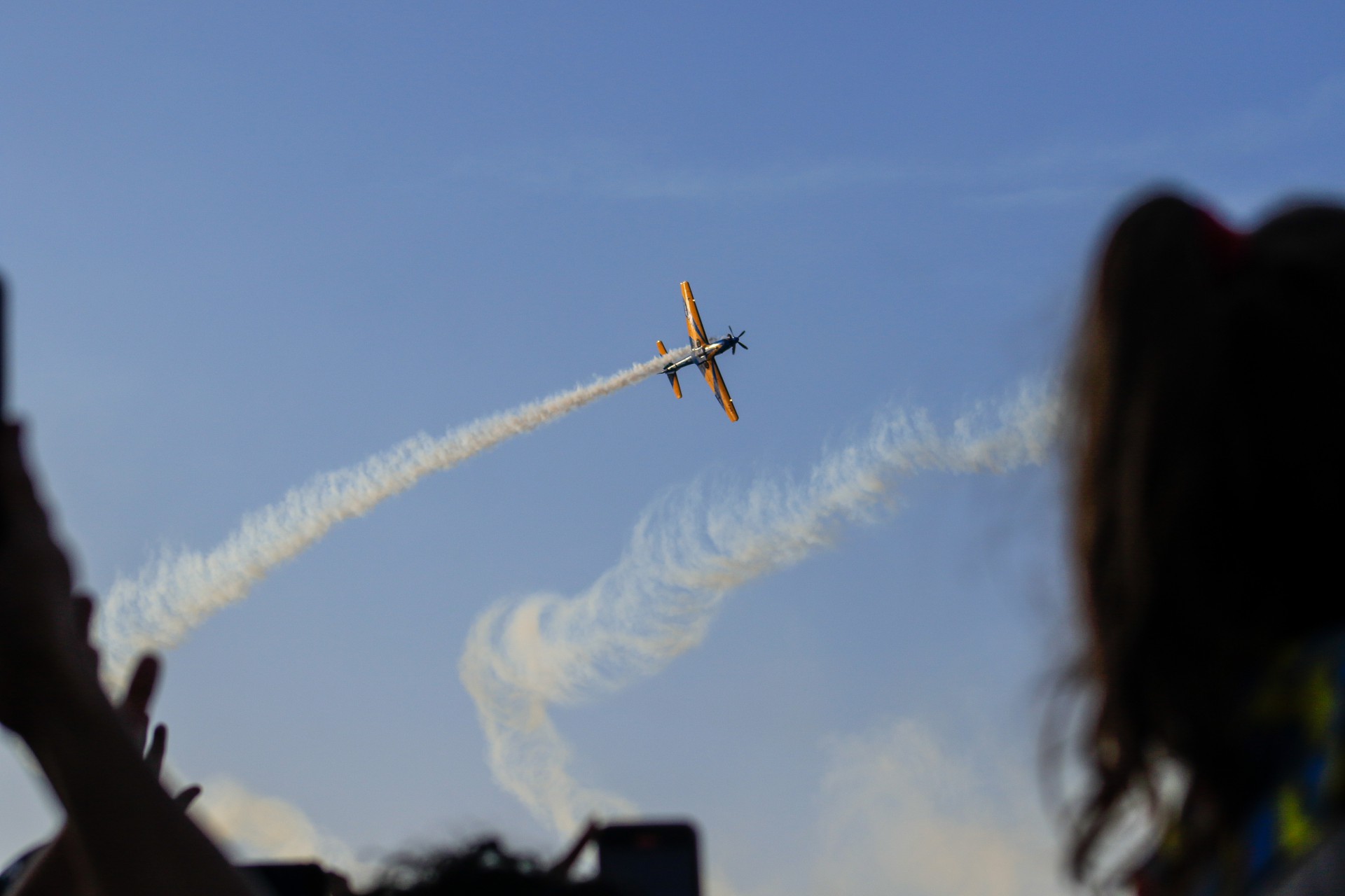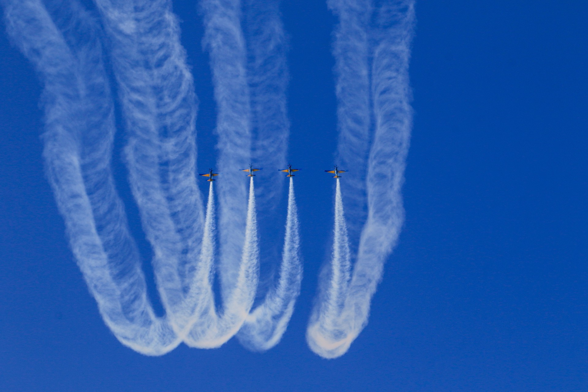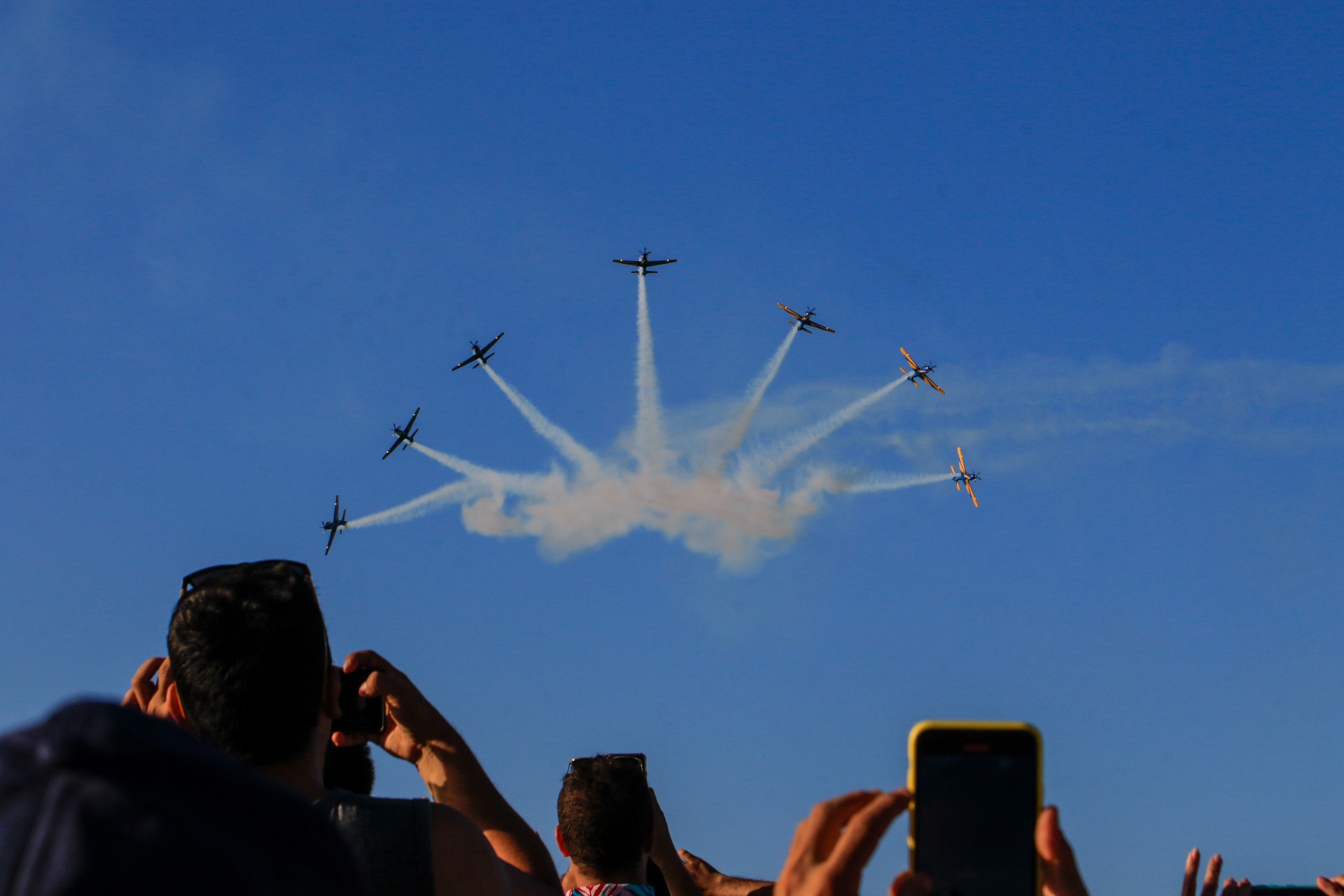 “A distância entre as aeronaves em alguns momentos é tão pequena quanto a largura de um carro”, apontou o capitão Vinícius Moreno, piloto que ficou em solo fazendo a narração das acrobacias da atração, que durou um pouco mais de 35 minutos e teve 50 movimentos.