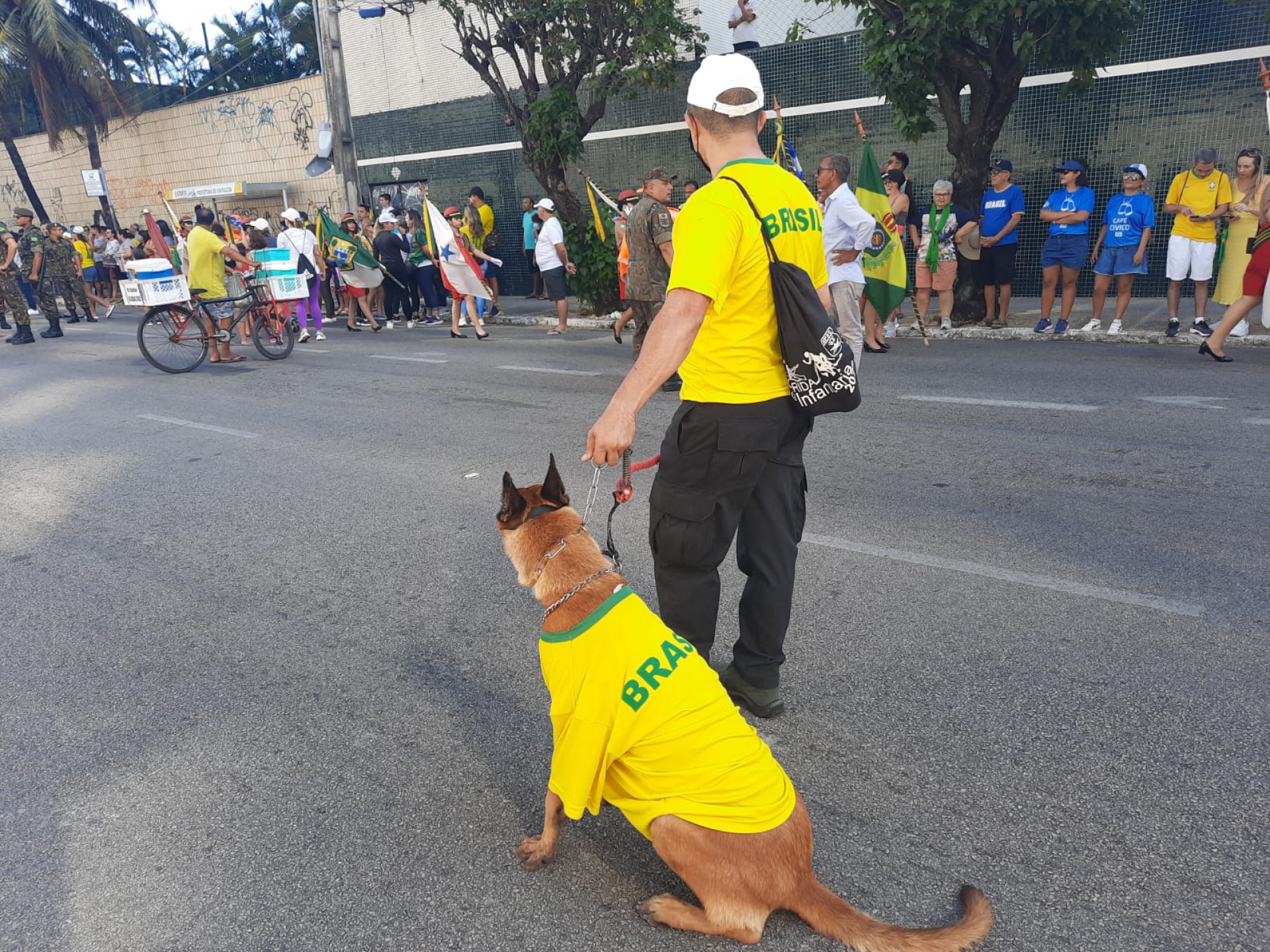 "A gente vem de uma família militar. Ficamos muito felizes que voltou a ter o desfile e trouxemos o Bento para ele aprender sobre a história do Brasil e criar esses valores nele", conta a psicóloga Rebeca Luz, que levou o filho de 11 meses para assistir ao desfile. "Desde pequenininho, eu boto uma roupinha militar nele e digo: 'filho, seu futuro é esse'."
