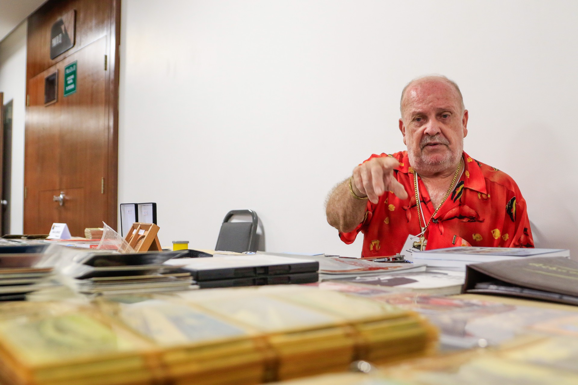 “Desde os meus 14 anos, eu sou colecionador. É a minha cachaça. Eu nunca bebi vodca, rum, uísque, mas sempre fui viciado em fazer muitas coleções”, afirma Carlos, bem humorado. Atualmente, ele está no encontro apenas comprando e vendendo itens de colecionador.