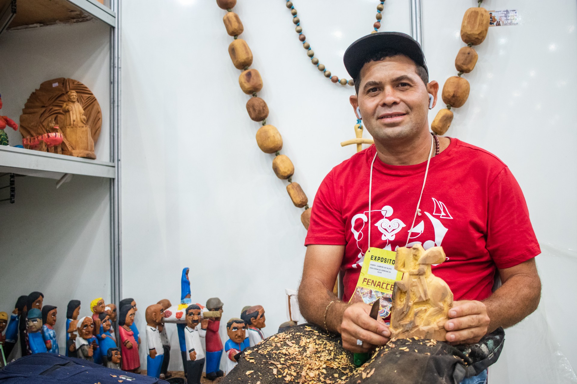 Trabalhando com madeira, José Everaldo Ferreira veio de Juazeiro do Norte, a 489,2 km de Fortaleza, para expor suas peças também pela primeira vez na feira. O artesão já expõe semanalmente seus trabalhos em sua cidade natal, junto com outros seis artesãos, no espaço intitulado Três Marias Cariri. "Aqui está muito bom, estou vendendo bem e todos estão gostando", pontua.
