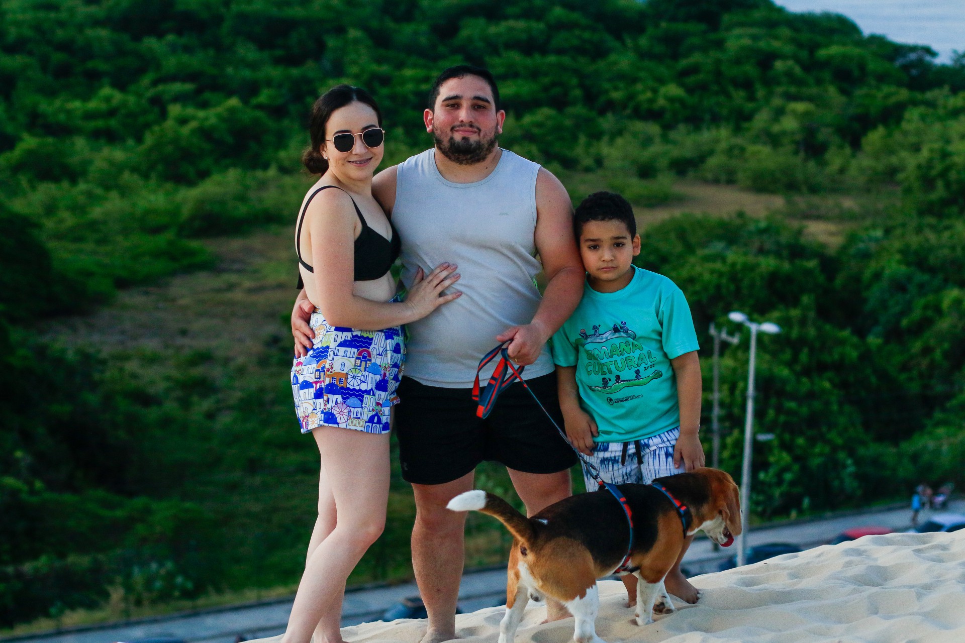 Quem também estava tendo o primeiro contato com o pôr do sol na duna era Helena Aquino, 24. A jovem veio do Rio Grande do Norte (RN) e estava no local ao lado do companheiro, do enteado e do cachorro que há três meses faz parte da família.