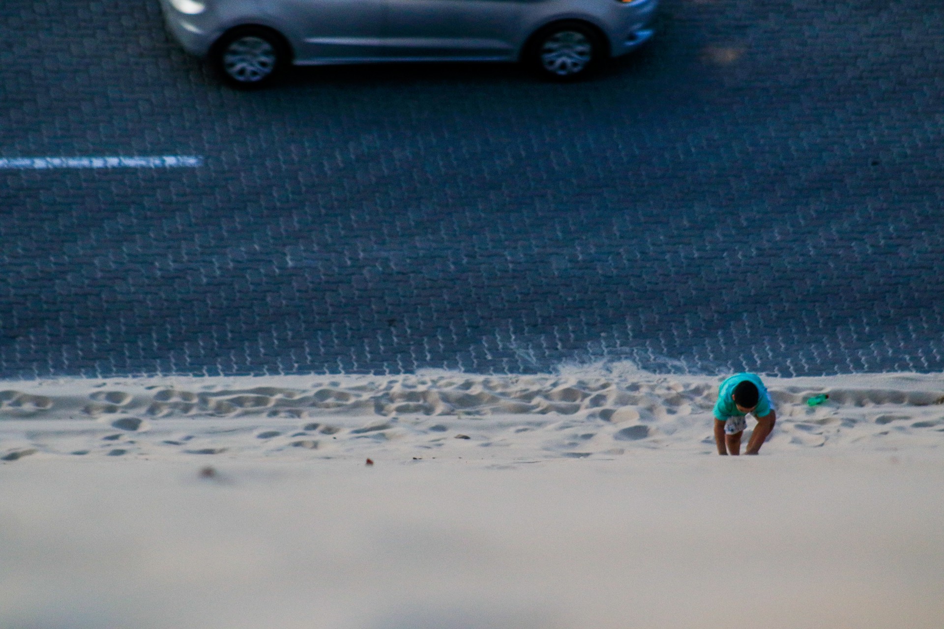 No entanto, para além daqueles que querem compartilhar da sensação de estar no alto da duna e comtemplar a paisagem, há quem opte por viver esse momento sozinho. Humberto Damasceno, 27, mora em Crateús e está passando as férias em Fortaleza. O jovem já havia subido o monte de areia uma vez com a família, mas neste sábado voltou ao lugar sozinho.