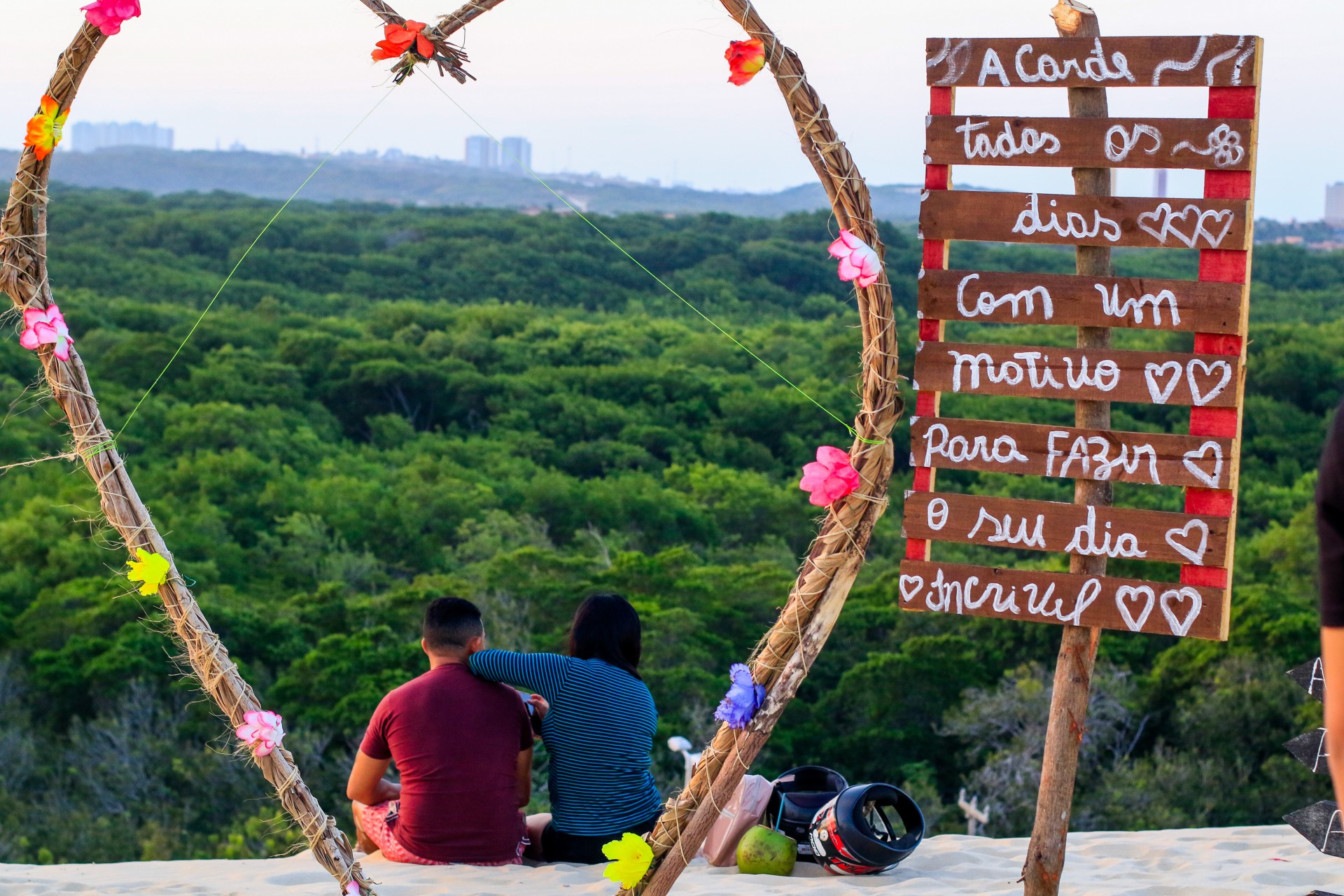 Mas na duna há também espaço para quem está começando um relacionamento e deseja ter as primeiras grandes memórias juntos. Esse foi o caso de Renan Jesuíno, 33 anos, e Icaro Araújo, 32, naturais de Fortaleza e namorados há apenas um mês.