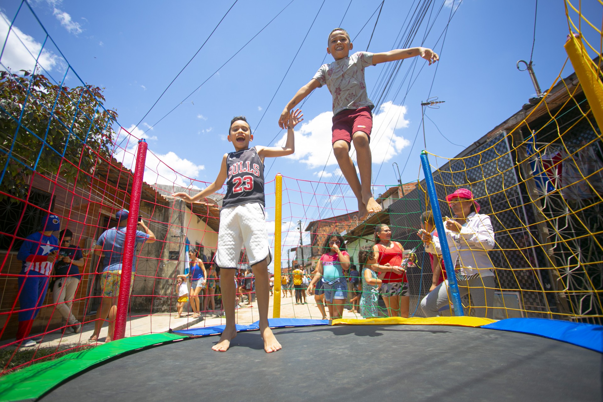 Em outra região da Cidade, no bairro Siqueira, uma travessa também se encheu de alegria pela mesma razão. O pula-pula — que não pode faltar —, lanches e a distribuição de doces e brinquedos fez a festa das crianças da comunidade.
