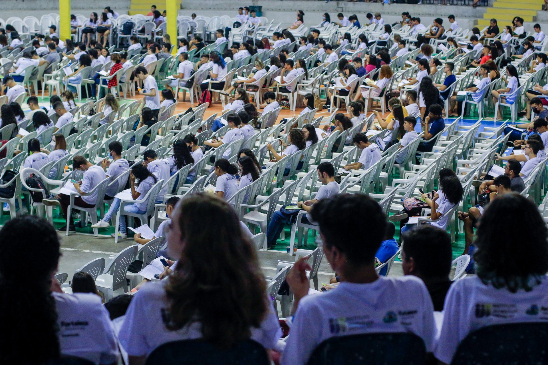 O ginásio Paulo Sarasate recebeu neste domingo, 23, mais um aulão presencial do projeto Academia Enem 2022, do segundo semestre. Esta edição do programa preparatório para o Exame Nacional do Ensino Médio (Enem), realizado pela Prefeitura de Fortaleza, conta com parceria da plataforma on-line de educação, Descomplica.