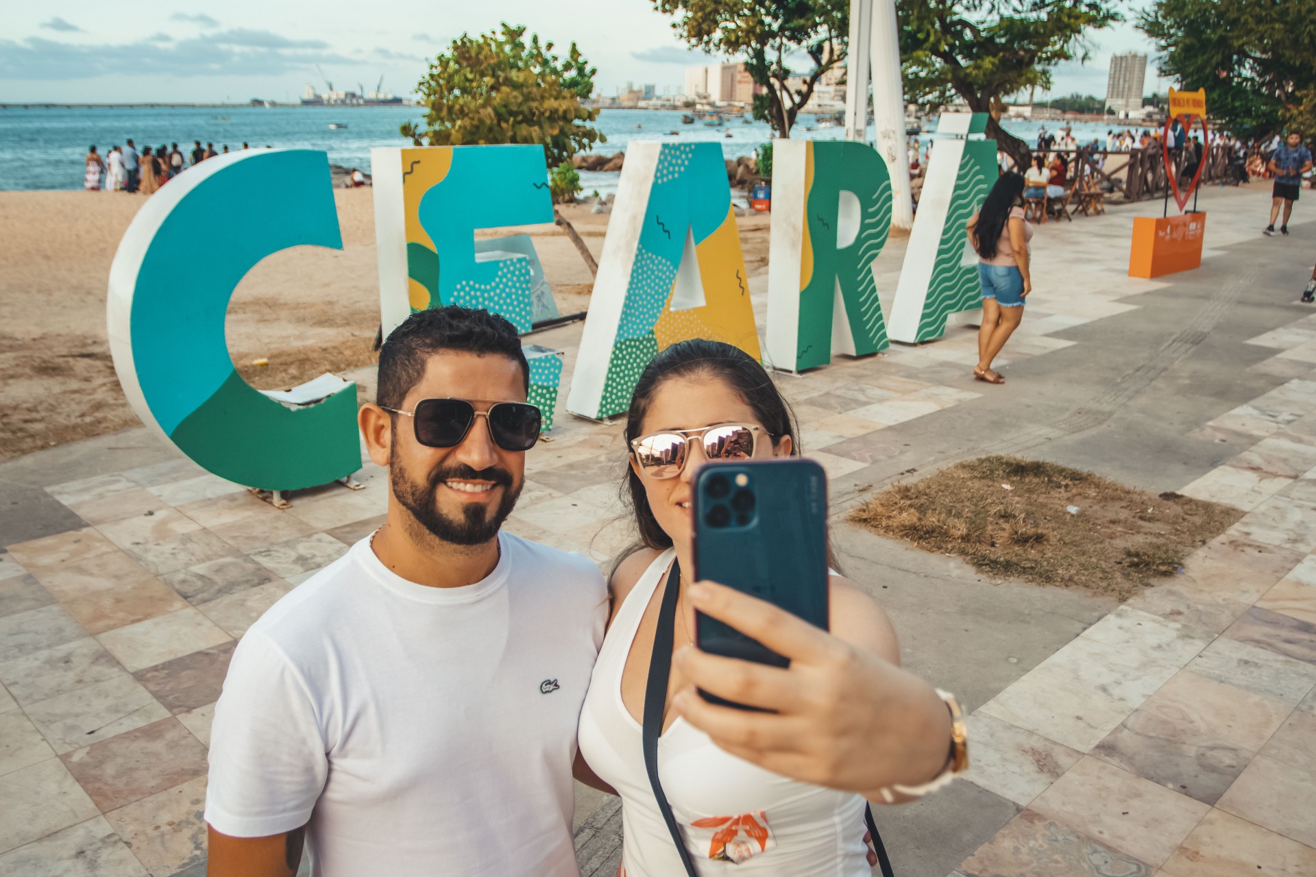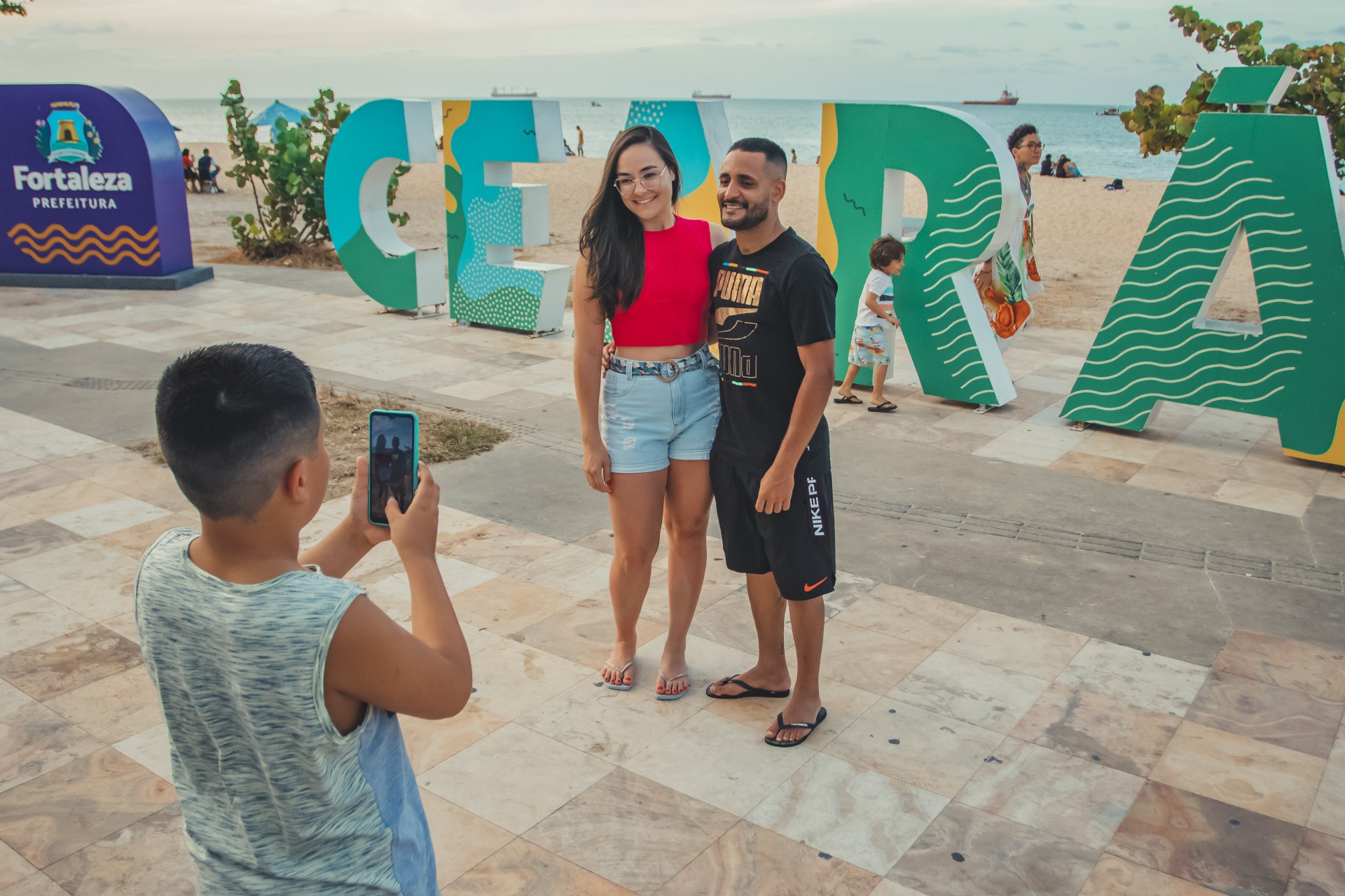 Quem também garantiu o registro foi o casal Aline Boitrago, 27, e Iago de Sousa, 30, que veio de Brasília com o filho, João Boitrago, 7, para visitar pela primeira vez a Capital cearense. Embora estando apenas um dia na Cidade, eles já se apressaram em tirar uma foto no letreiro, que deve eternizar essa viagem em suas contas no Instagram.