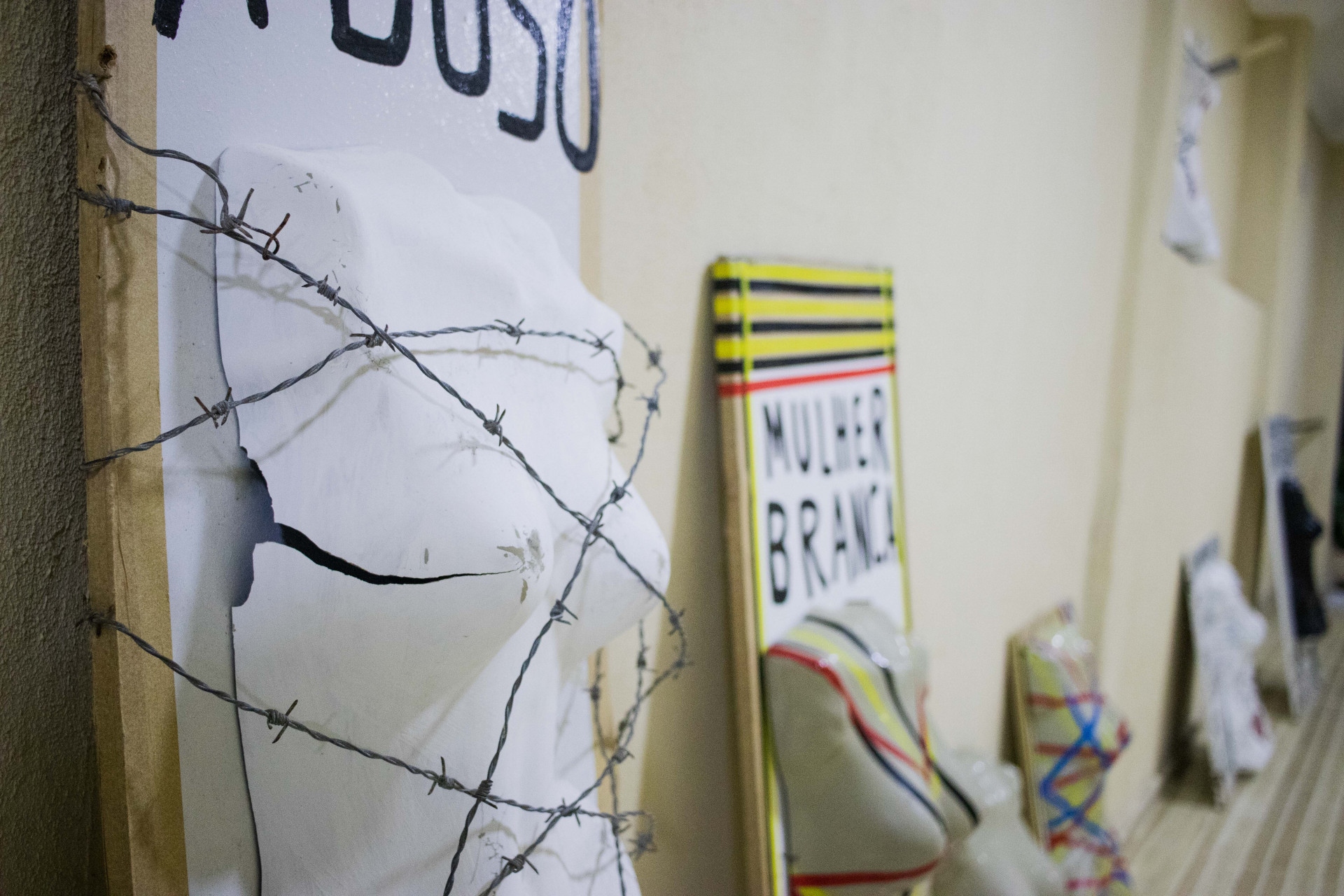 Carlos Careca, de 60 anos, utiliza os materiais recicláveis para retratar representações sociais sobre violência contra a mulher e preconceitos vivenciados pelas minorias sociais