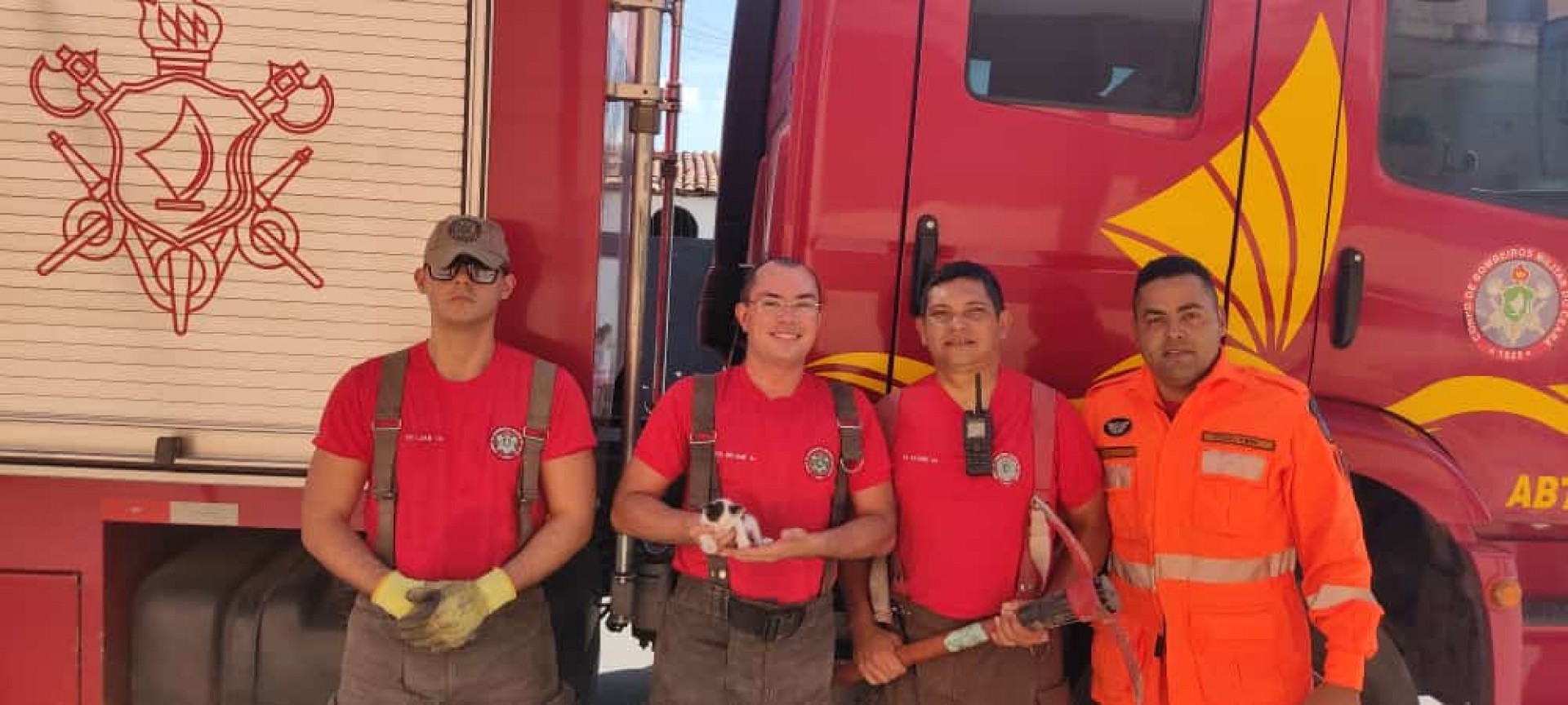 Um filhote de gato foi resgatado pelo Corpo de Bombeiros neste sábado, 10, em Fortaleza, após passar dois dias preso dentro de um cano de PVC. O caso ocorreu na rua Capitão Theogenes Gondim, no bairro Bonsucesso. Os militares foram acionados pela proprietária de uma residência, que ouviu os miados do felino na encanação de água do imóvel.