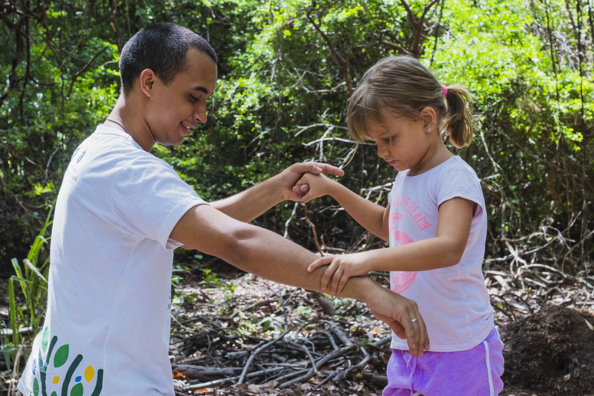 Eles contam que as pequenas Martina, 5, e Luna, 3, já estão acostumadas e gostam de acompanhá-los nas caminhadas. "A gente detesta ir para shopping e adora esses passeios. Elas conhecem as árvores, apreciam os animais", compartilha.