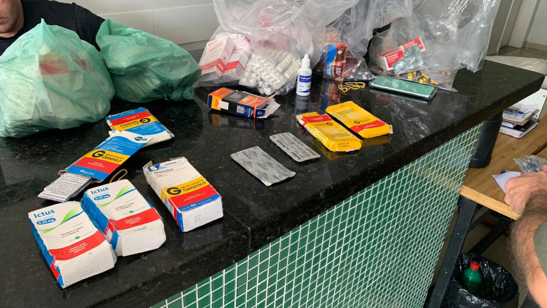 Dentre os medicamentos, a Agência apreendeu antibióticos, de uso contínuo e controle especial, além de 150 itens entre frascos de remédios variados, potes, tubos de pomadas, sachês e produtos curativos.