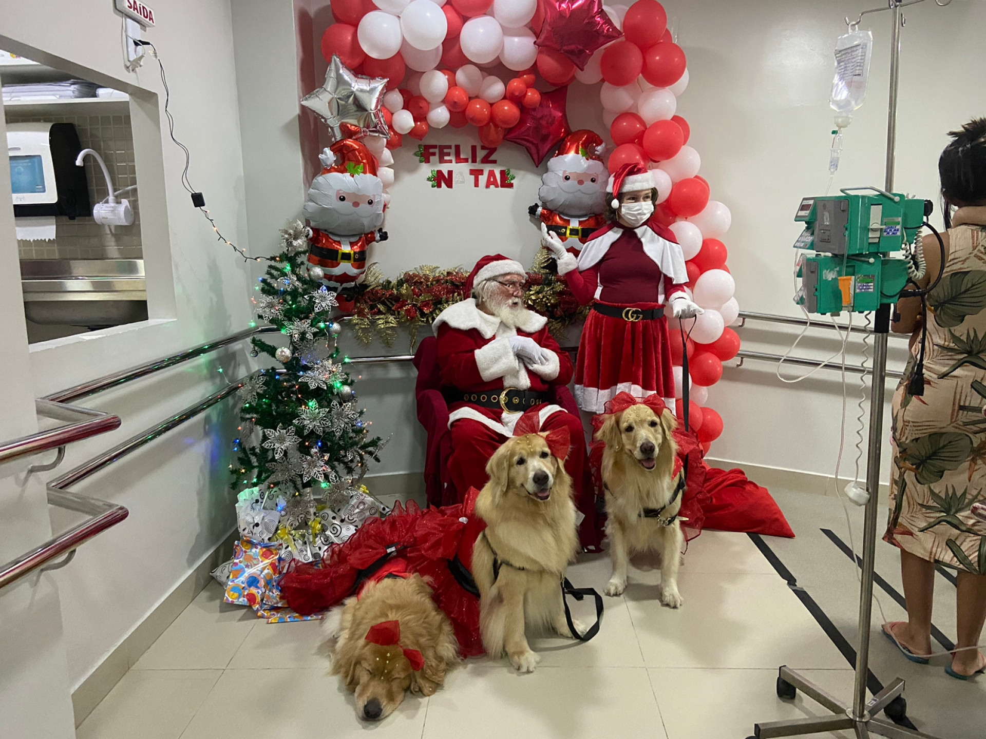 Papai Noel e cães marcam presença no Natal de crianças internadas