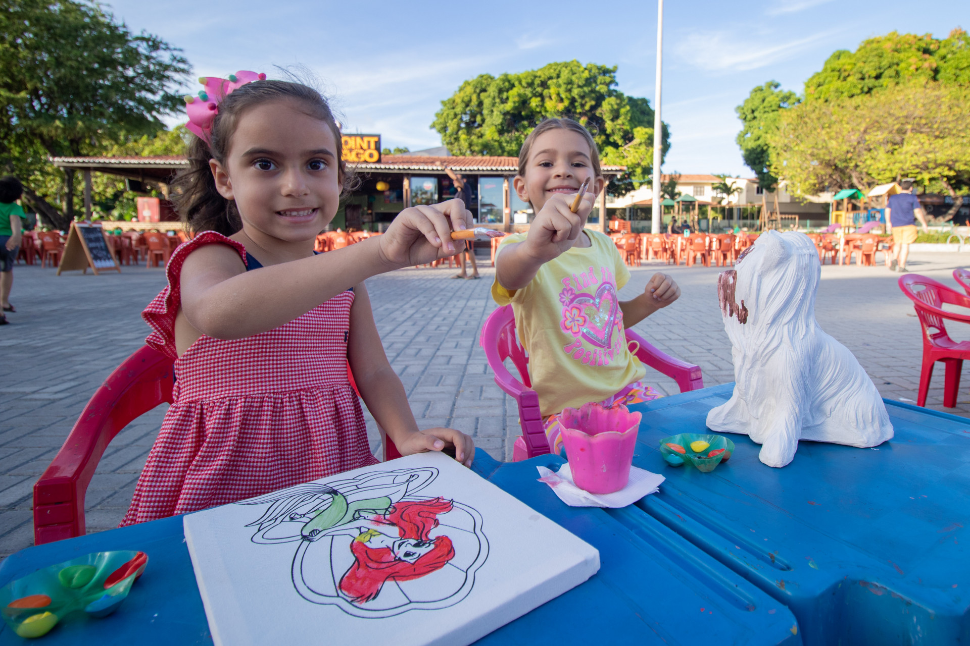 A família cearense radicada em Cuiabá, no Mato Grosso, composta por Lidiane Lima, Aldo Maia e a pequena Mariana, de 6 anos, conta que decidiu passar as férias na casa da avó, em Fortaleza, e desde dezembro têm aproveitado juntos as praças e parques da Capital. O favorito de Mariana é o Lago Jacarey, especialmente pelas pinturas em tela e gesso disponíveis para venda no estande da dona Luizianne Miranda, o “Pintando O Sete”.